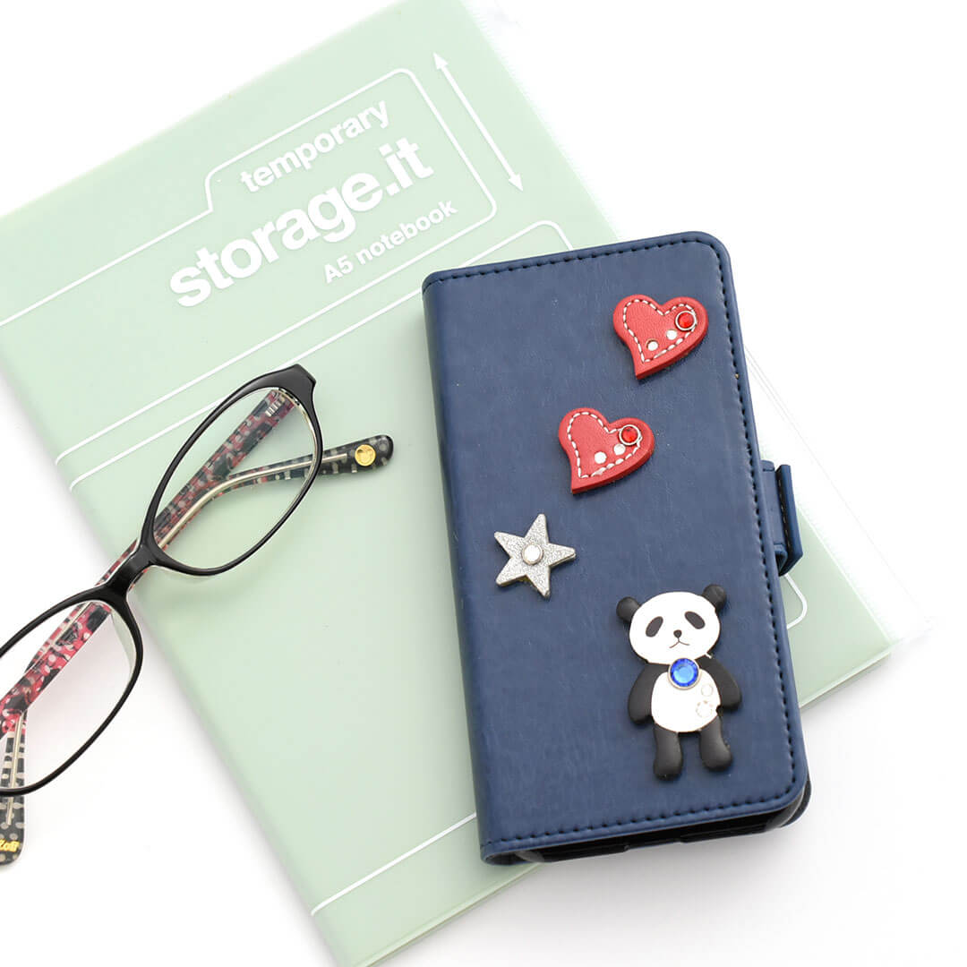 マグネットフラップがサイドにあるので、表側は飾りパーツを自由に配置することができます。