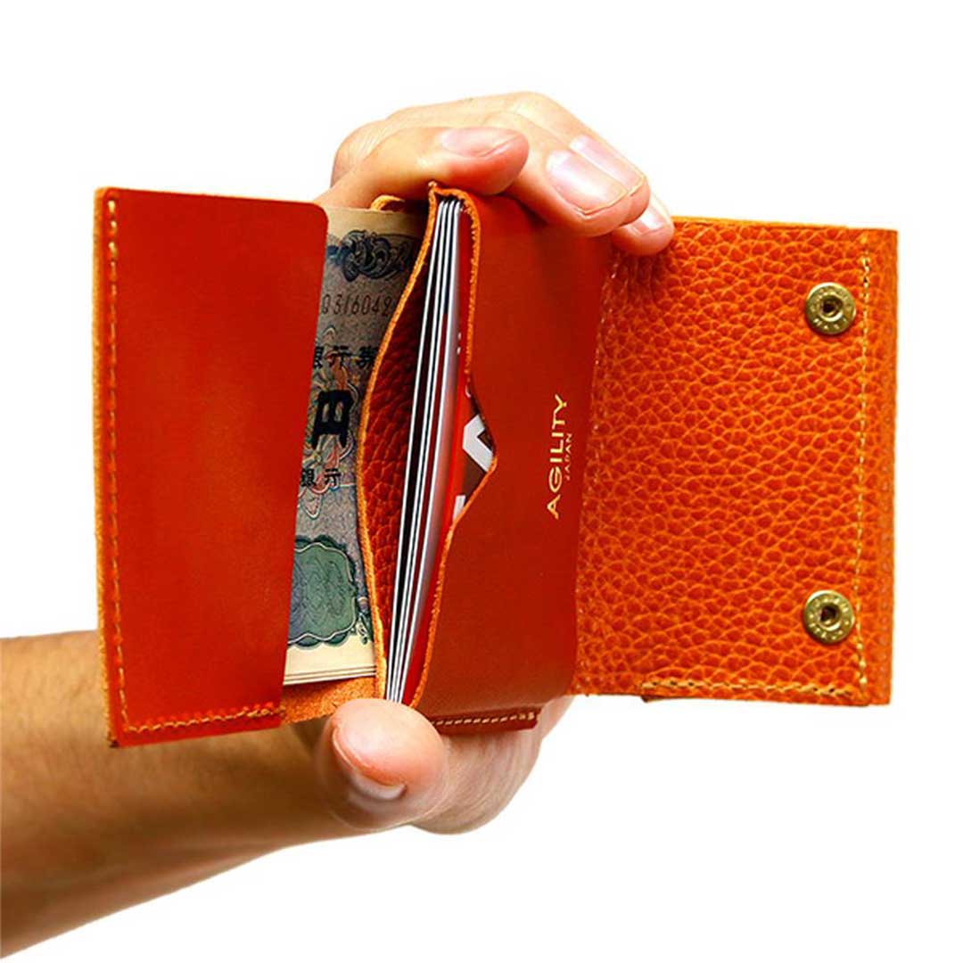 お札の端はカード入れ上部分の革の下にくぐらせて収納します
