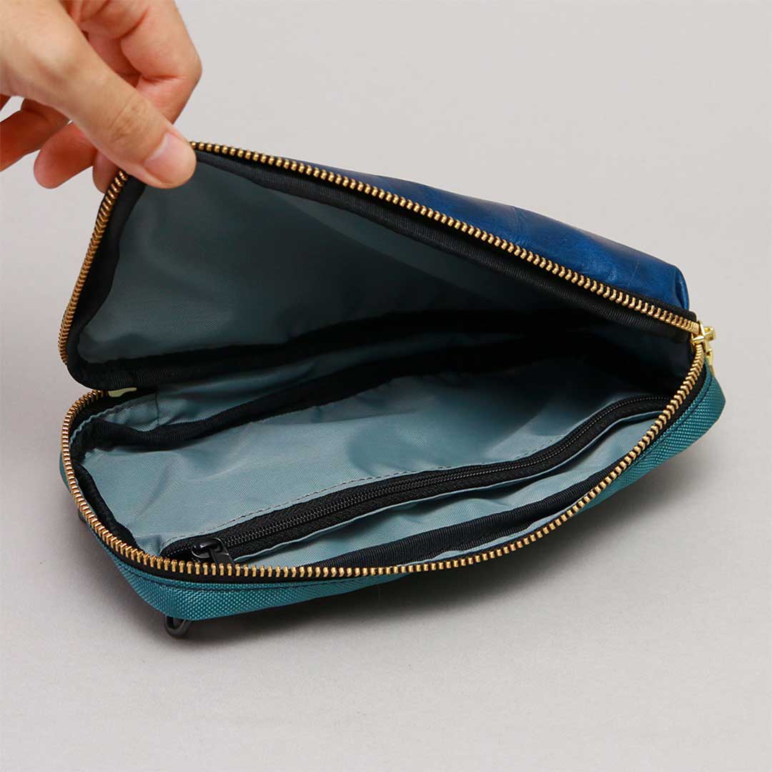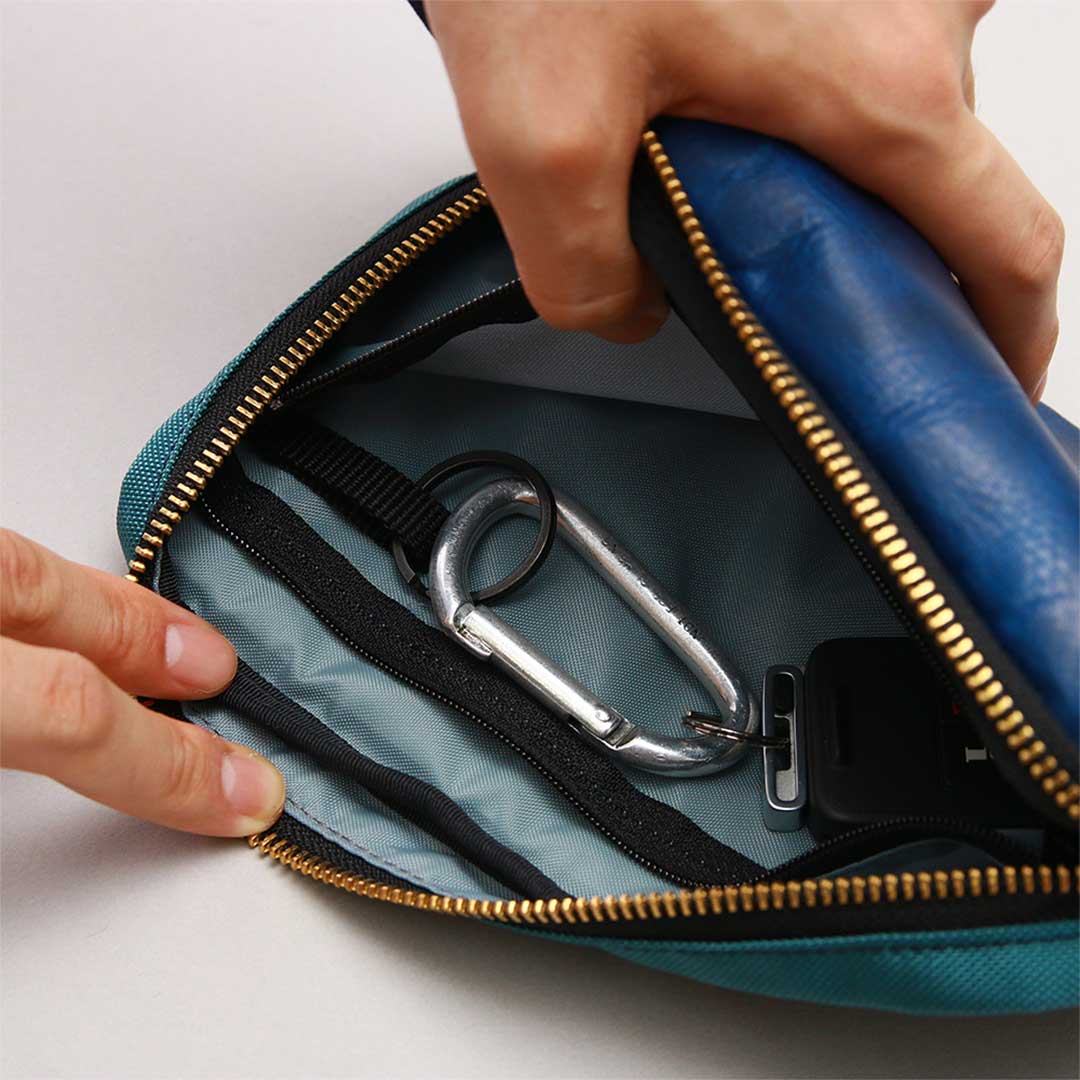 メインの収納部以外にも、間仕切りも兼ねたファスナーポケットがあります。