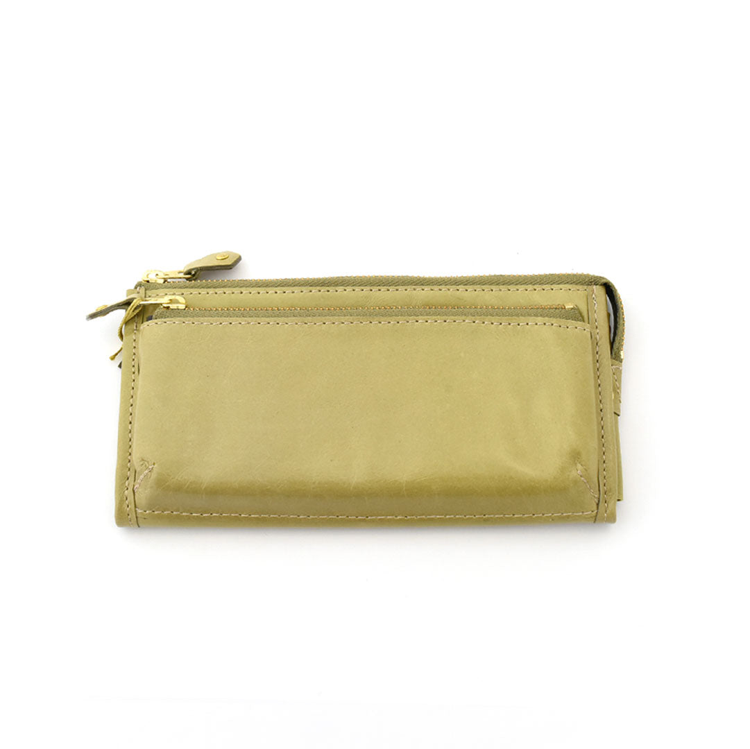 ペンケースのようにも見えますが、お財布です。お札が折らずにギリギリ入るコンパクトなサイズ。ファスナーを開ければ全てを一気に見渡せます。一つひとつを作家さんが丁寧に作っています。革の素材や加工方法によってそれぞれ価格が違います。