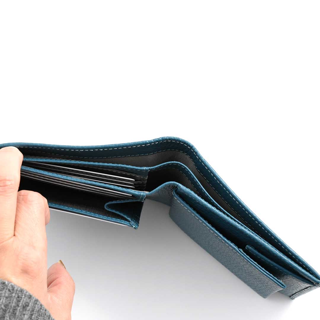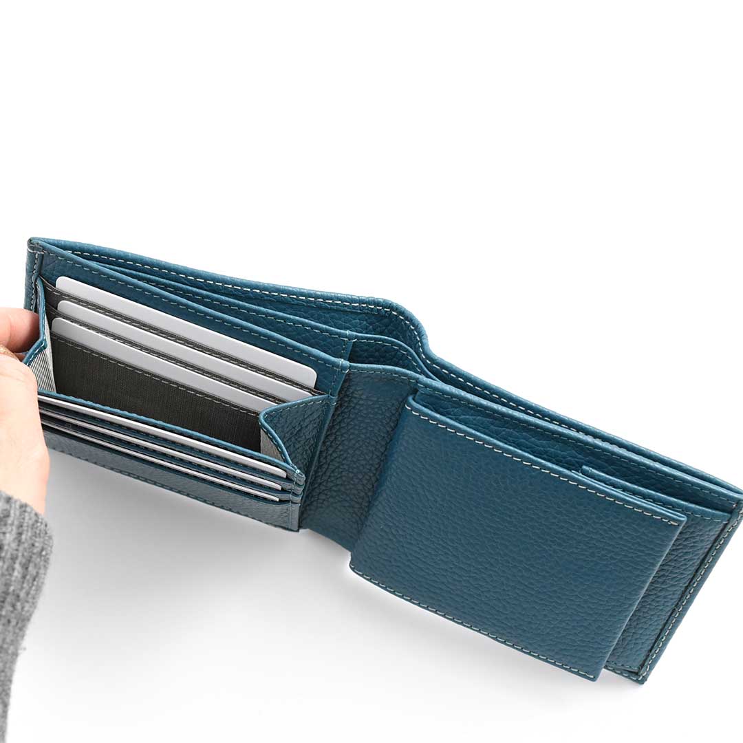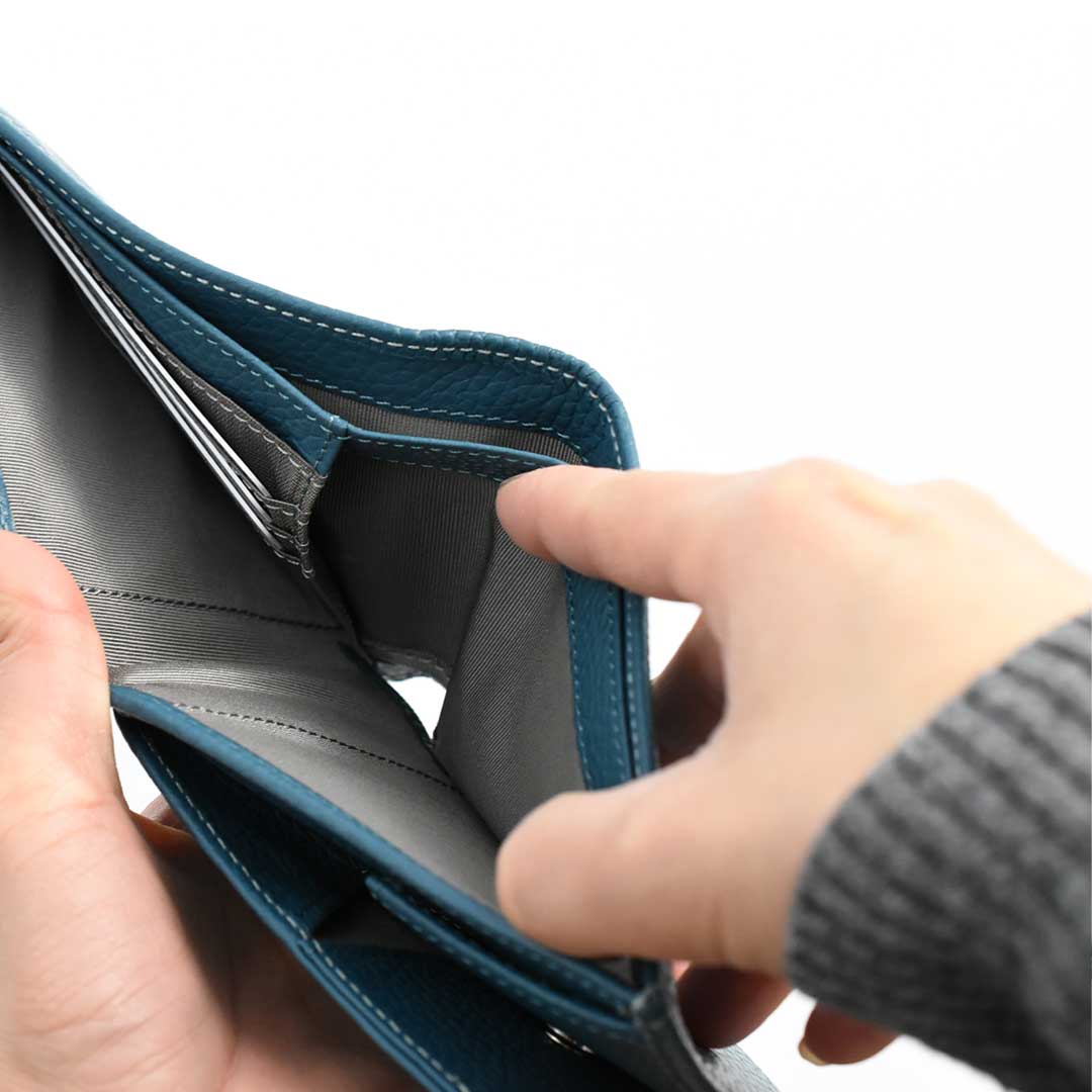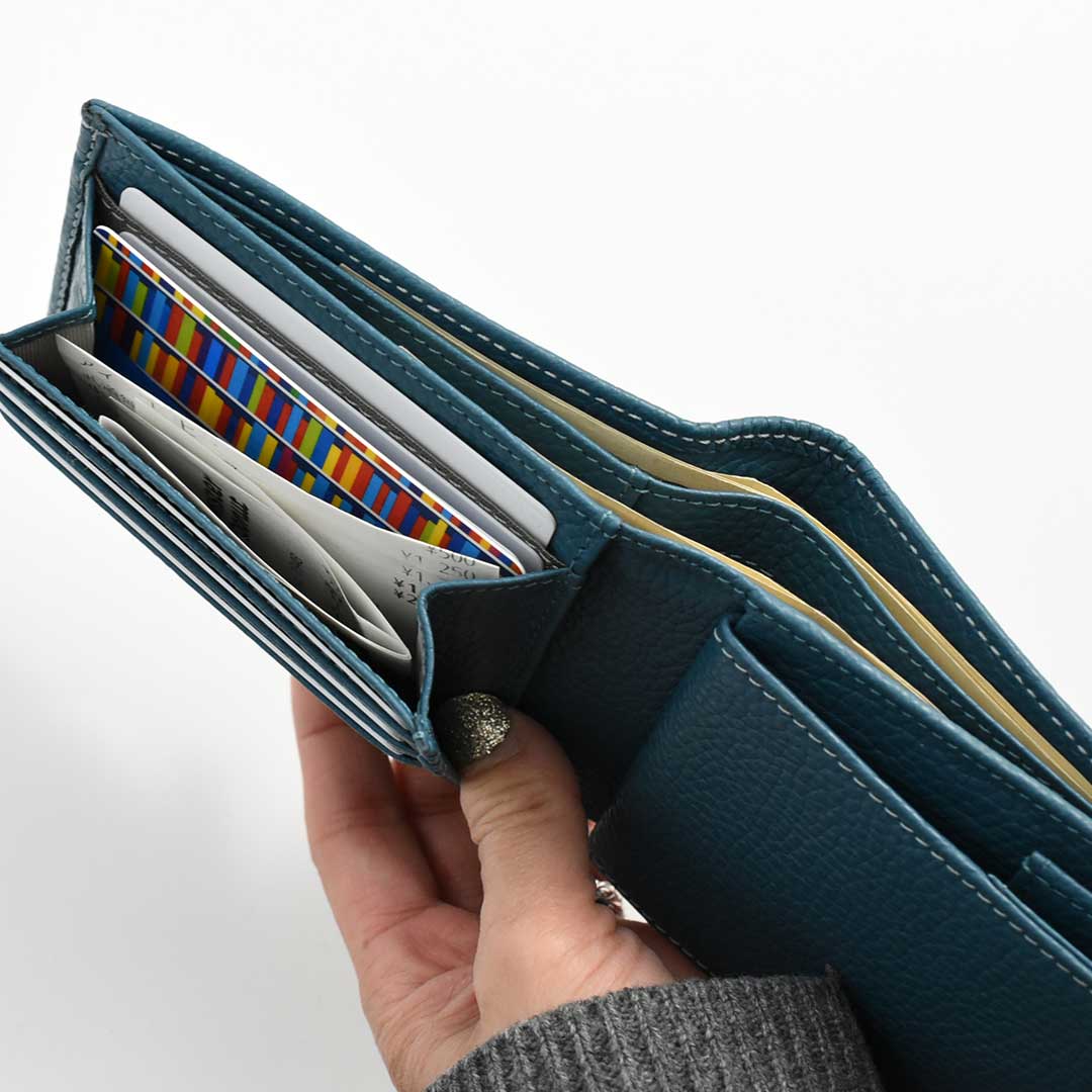2つ折り財布なのにカードポケットが充実しているのも特徴。