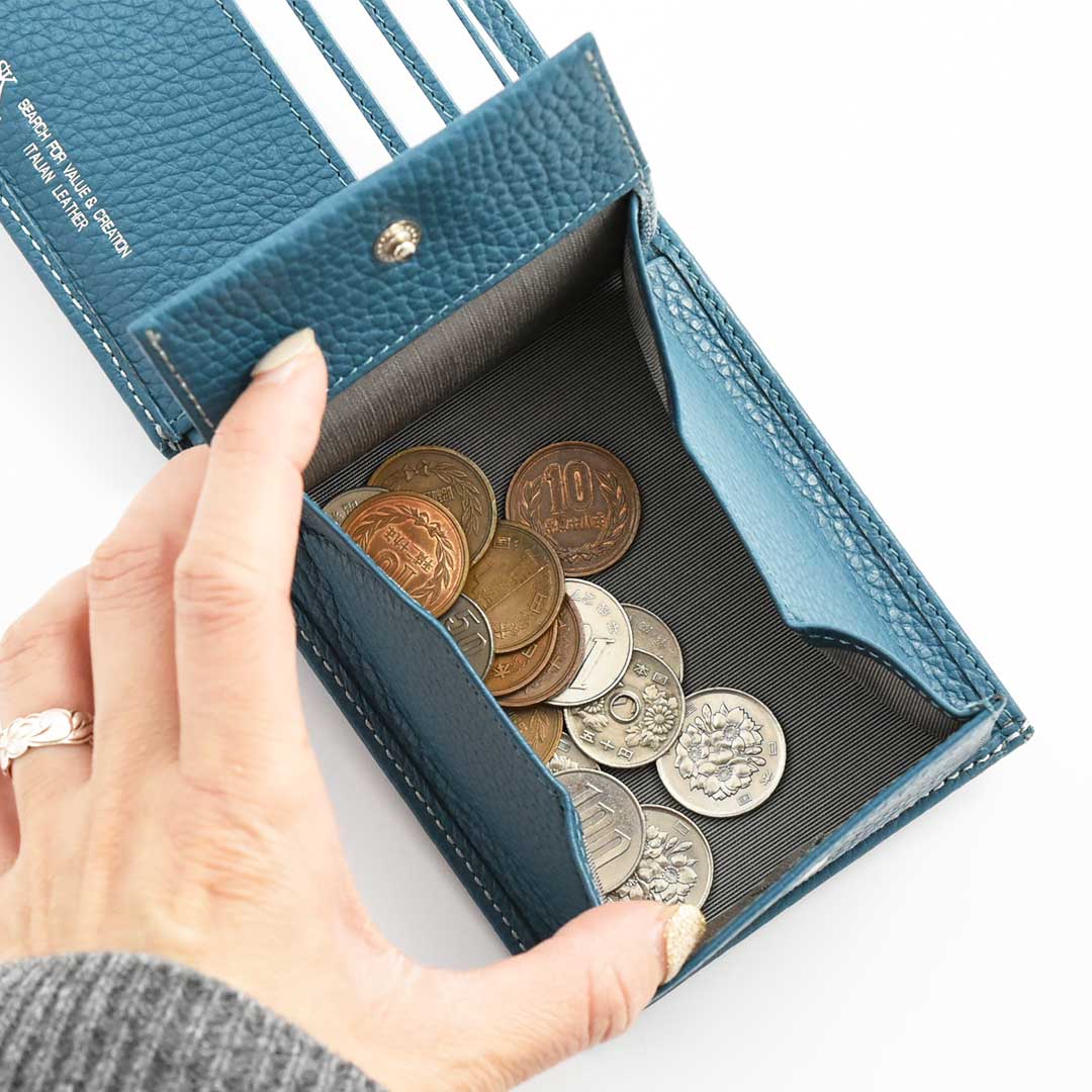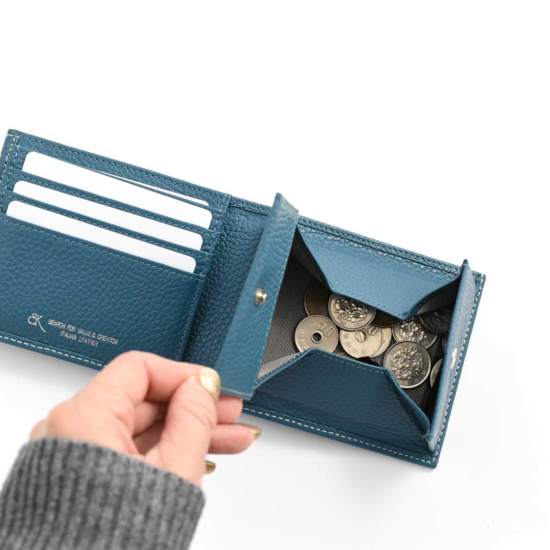 イタリアンシュリンクレザー 二つ折り財布 BOX型小銭入れ