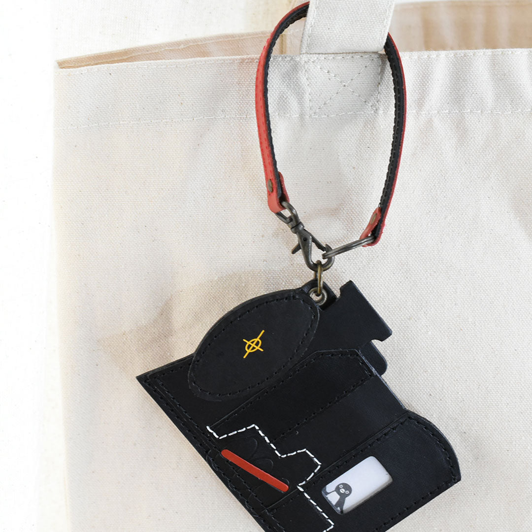 電車パスケースをセットしたこのストラップをバッグの持ち手につければ、愛おしさがさらに増しますね。