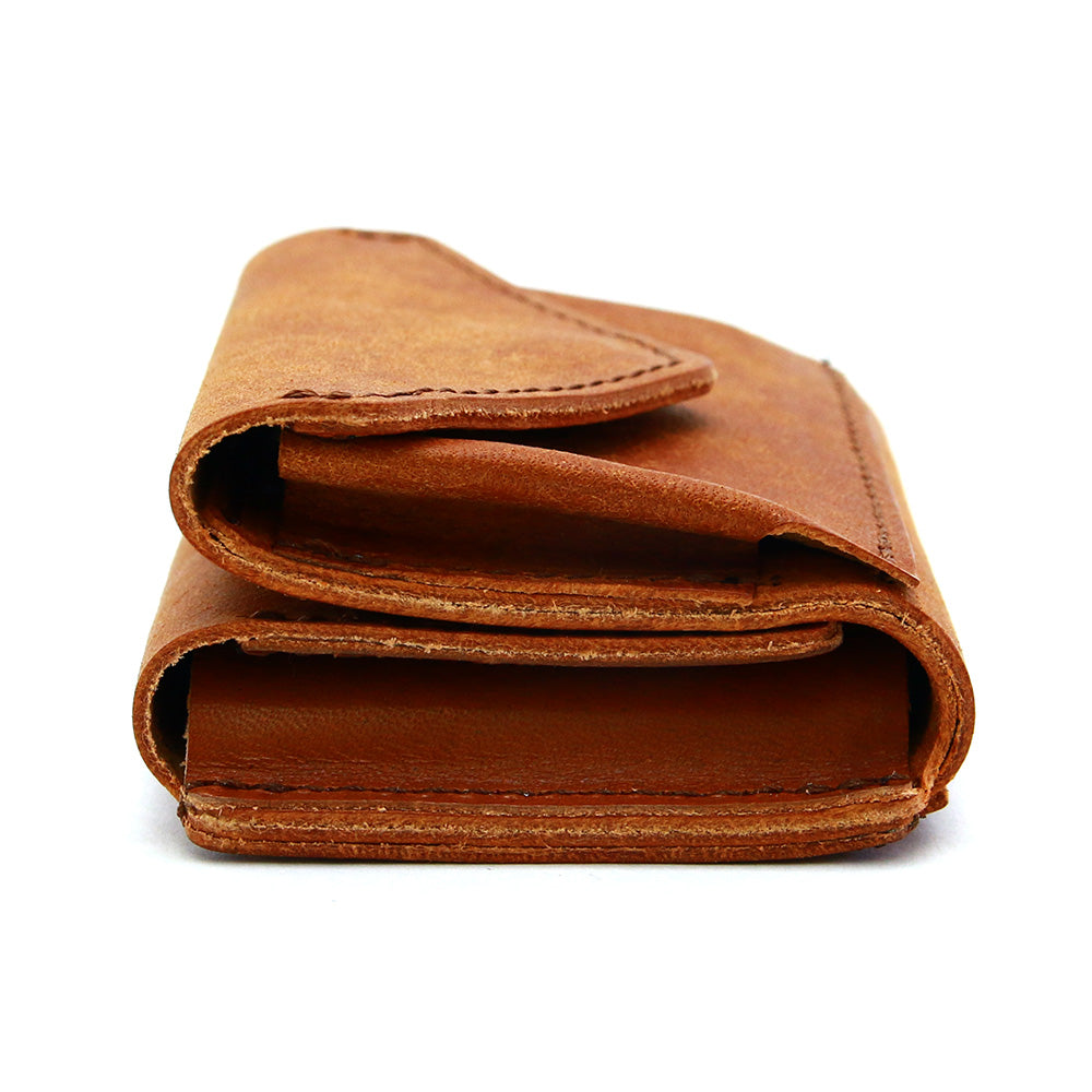 化学薬品ではなく、植物性タンニンのみを用い時間をかけて鞣された革に、家畜牛のすね骨や無蹄足を煮沸して採取した純度の高い所謂「牛脚油」で時間をかけながらゆっくりと加脂しています。油が浸透しにくいのでとても時間と手間、コストのかかる作業ですが、その代わりにオイルが抜けにくく、使い込んだ時の色艶の上がり方が大変綺麗で、美しくエイジングされるのが特徴です。