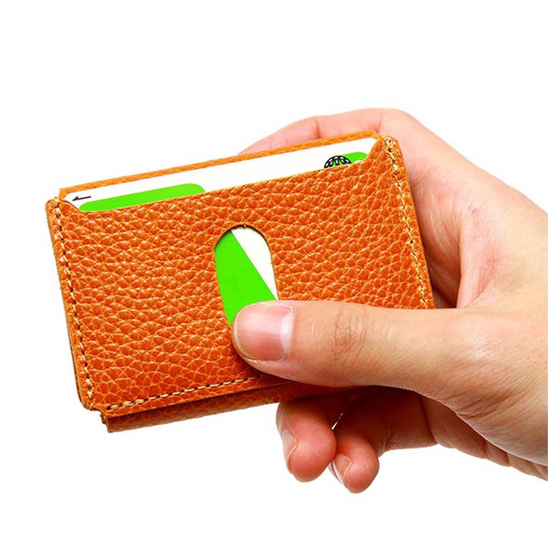 最初はふんわり広がったポケットですが、カードを入れることで革がなじみカードの形に変化していきます。