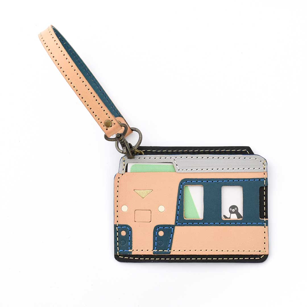 (電車パスケースとは違う革を使用していますが、お色やイニシャルを自由に組み合わせられます。)