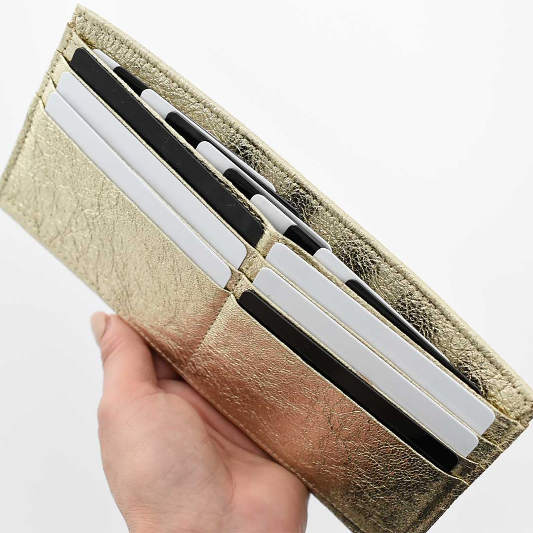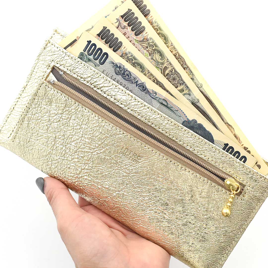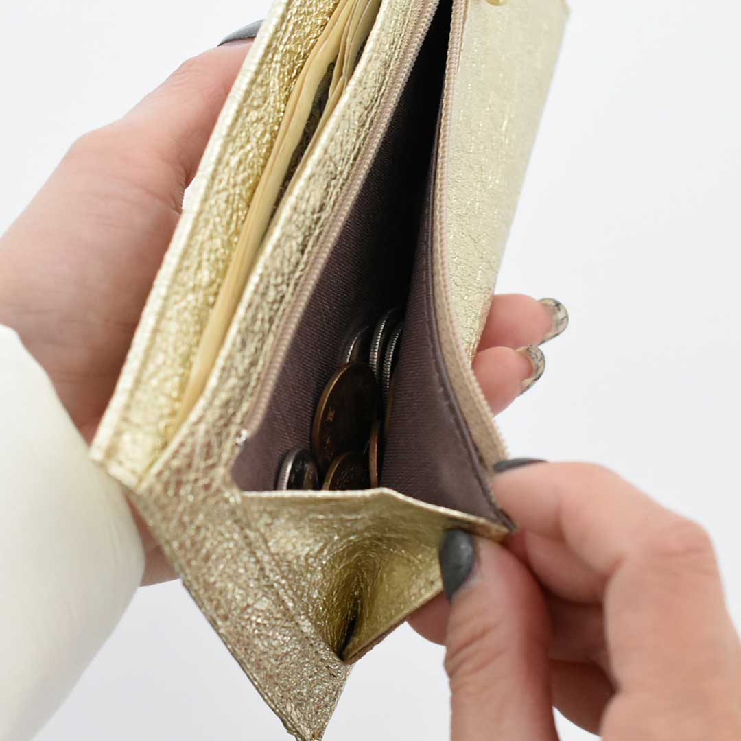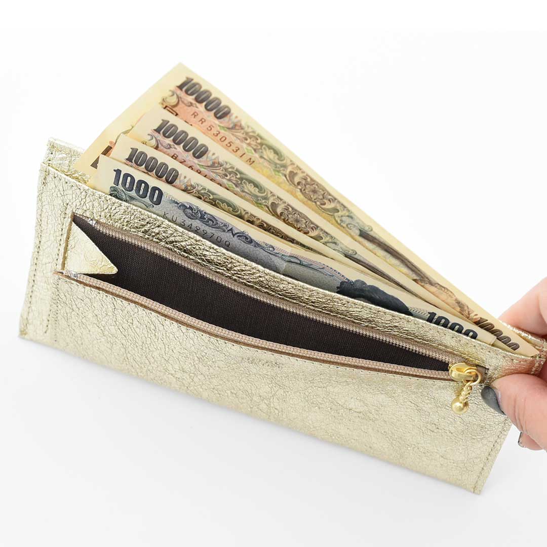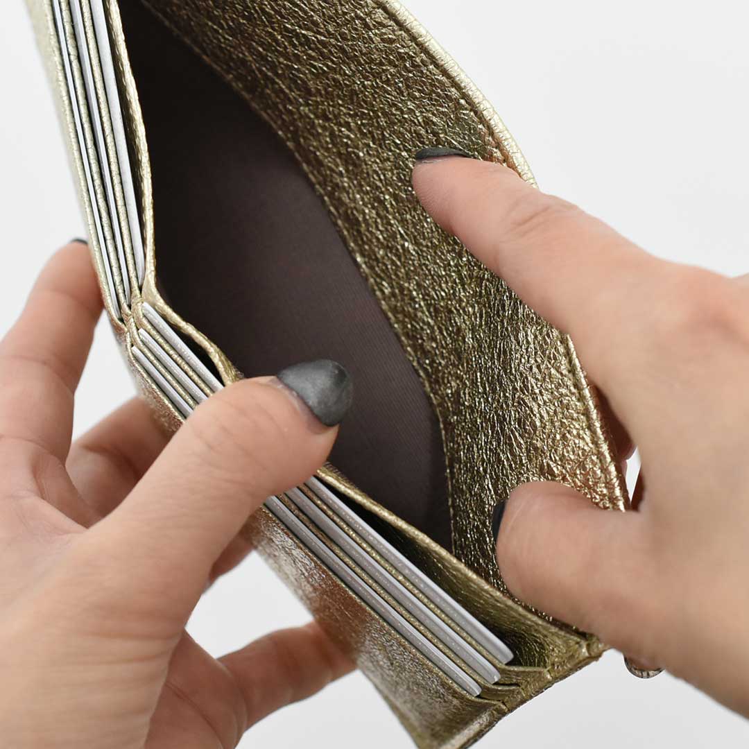 ポシェットなどにお財布を入れたまま、お札やカードをすっと取り出せます。