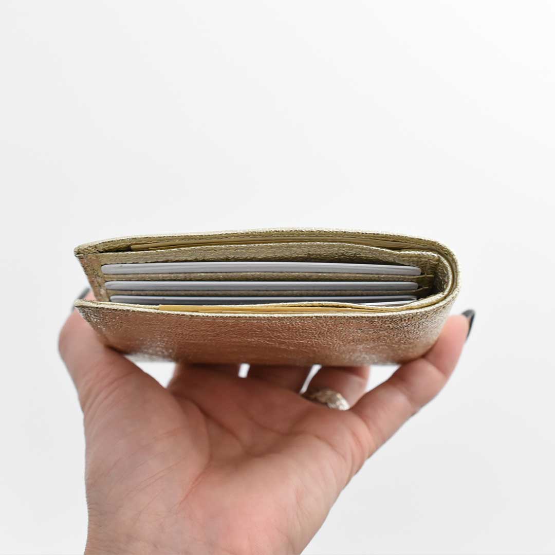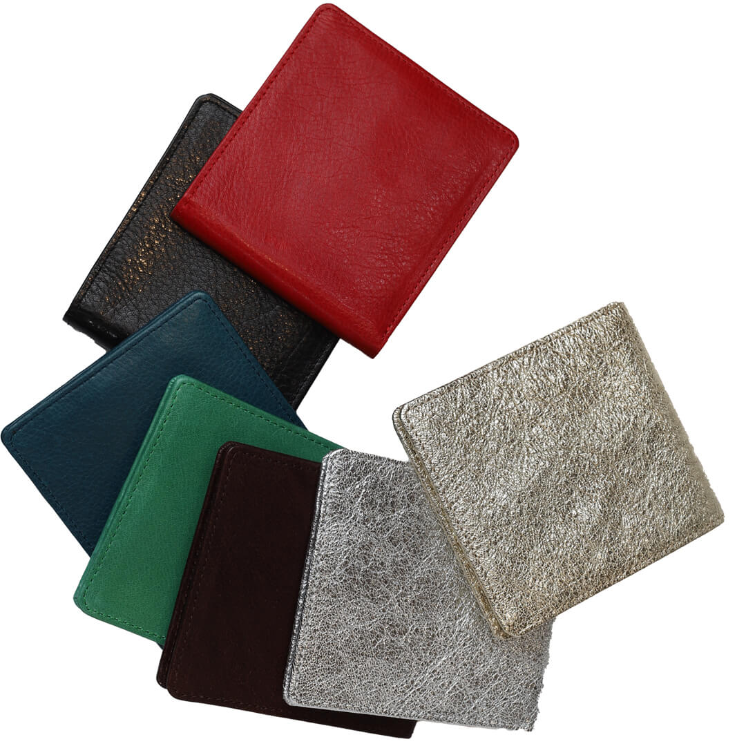 2つ折り財布の中でもコンパクト、薄さはなんと5mm~10mm(2つ折れ部分)で作ったお財布です。