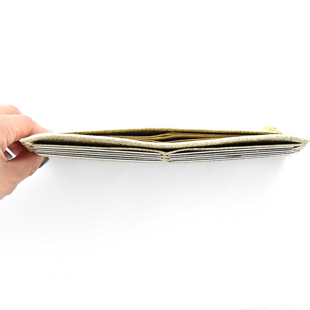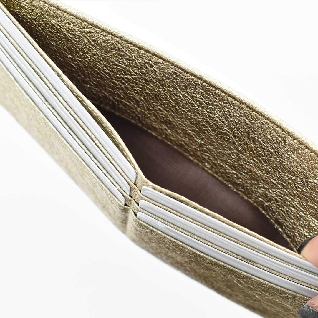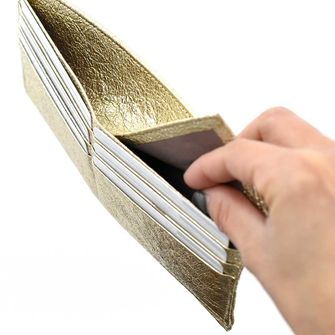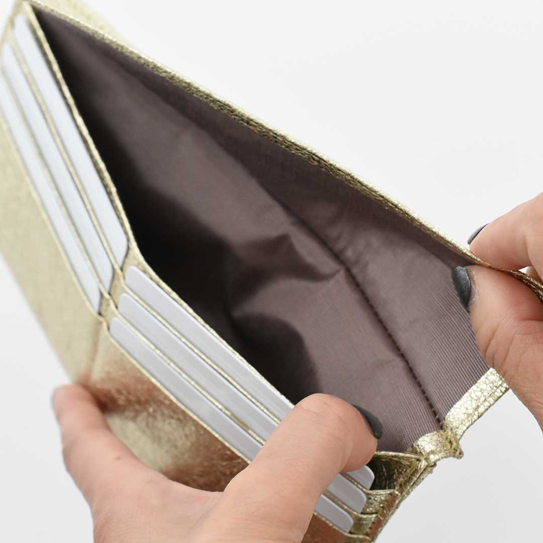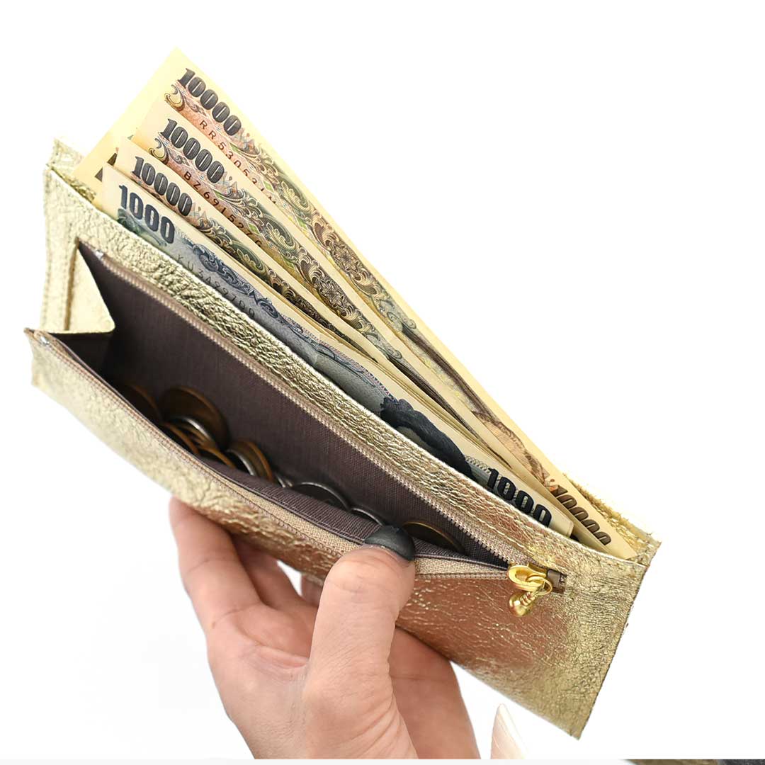ポシェットなどにお財布を入れたまま、お札やカードをすっと取り出せます。