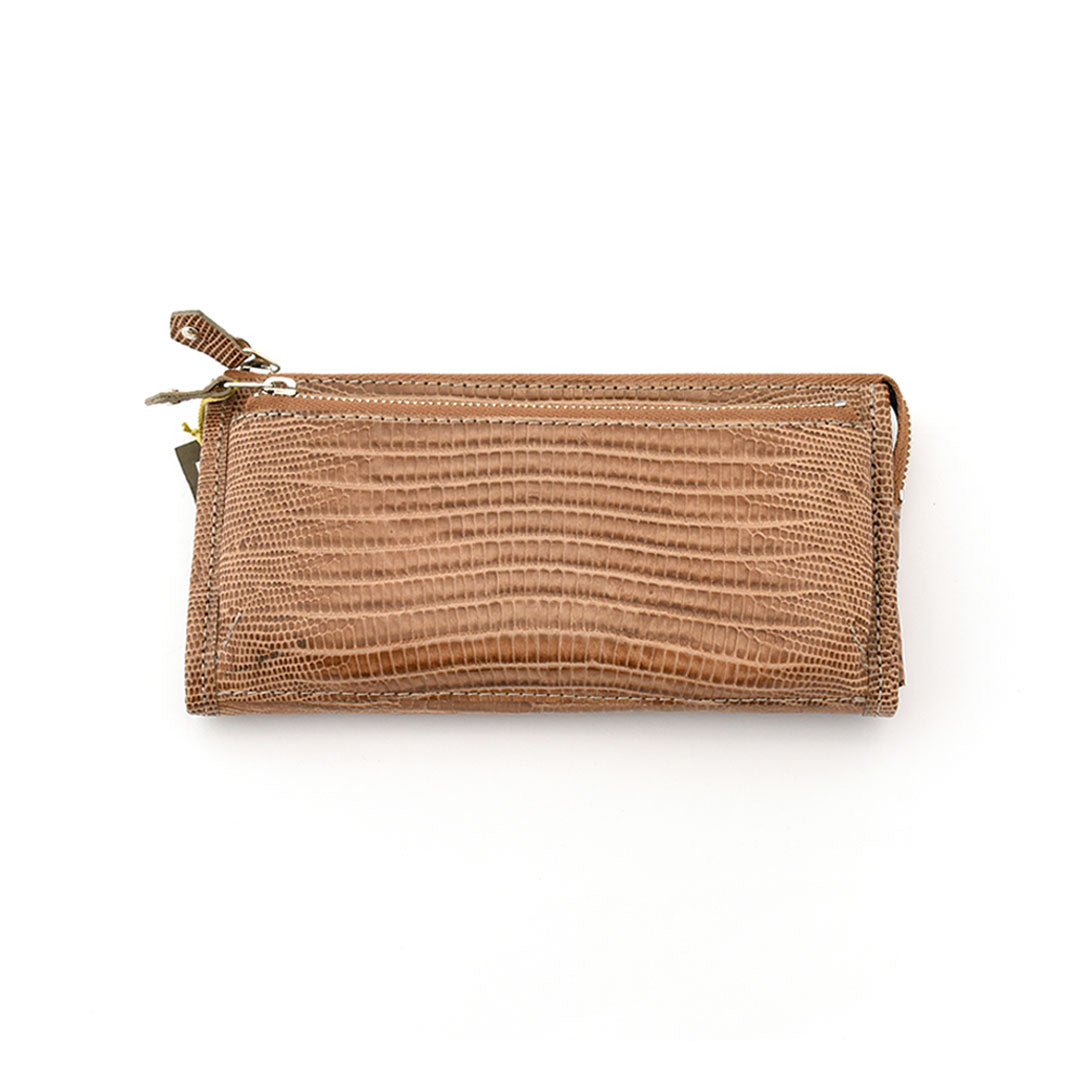 ペンケースのようにも見えますが、お財布です。お札が折らずにギリギリ入るコンパクトなサイズ。ファスナーを開ければ全てを一気に見渡せます。一つひとつを作家さんが丁寧に作っています。革の素材や加工方法によってそれぞれ価格が違います。