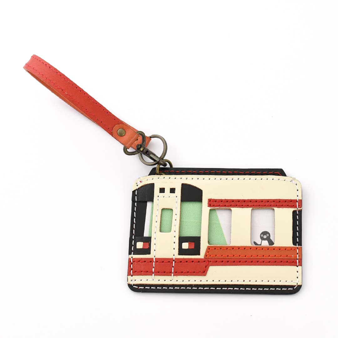 (電車パスケースとは違う革を使用していますが、お色やイニシャルを自由に組み合わせられます。)