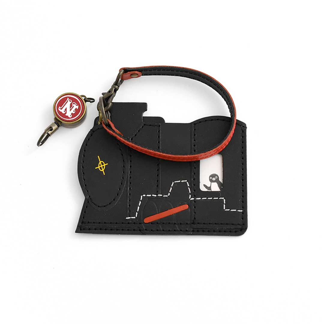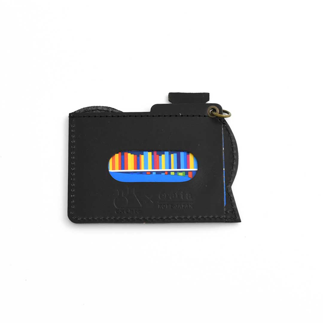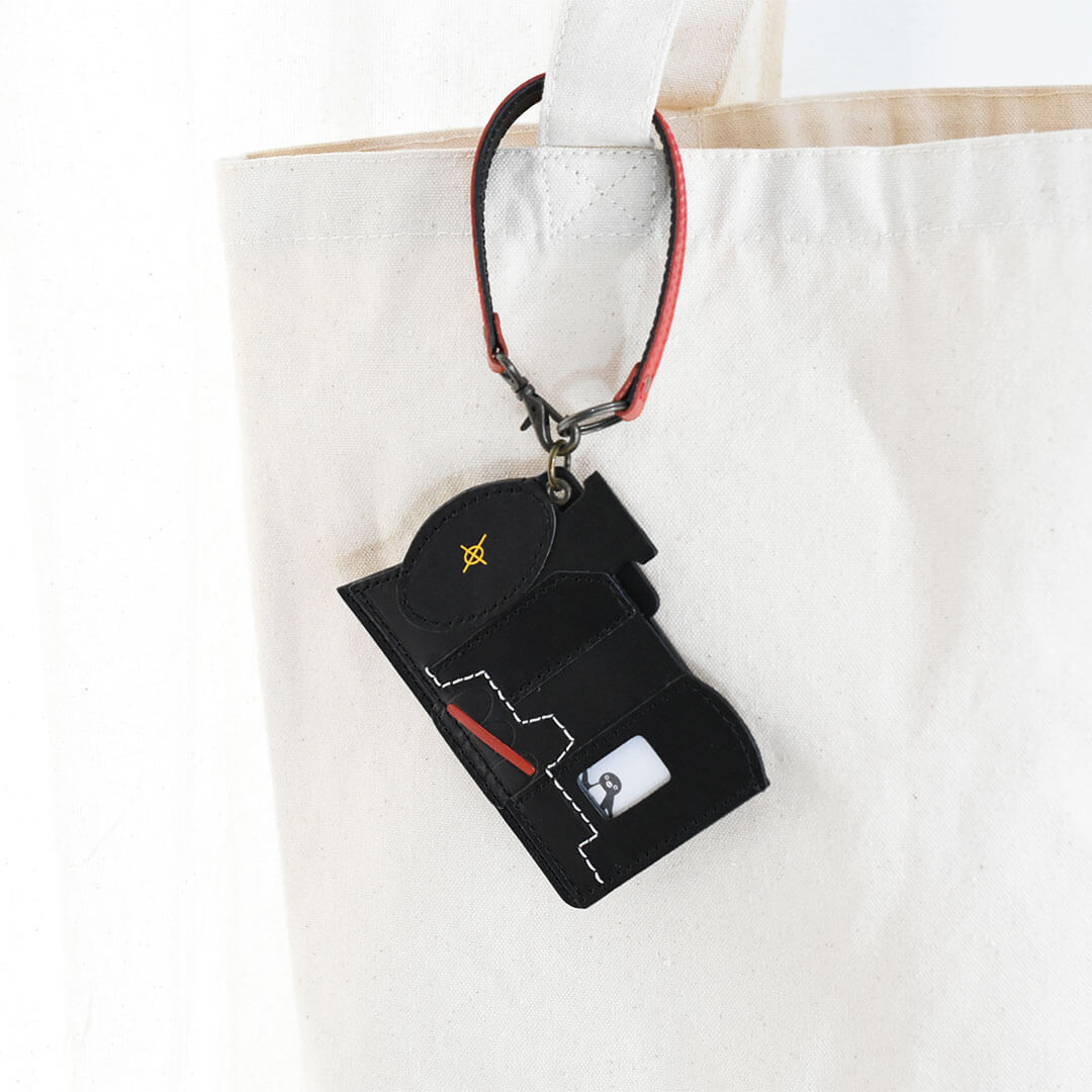 ブラックの胴体に車輪部分をつなぐ赤のラインがアクセントになっていてかっこいい!パスケース。