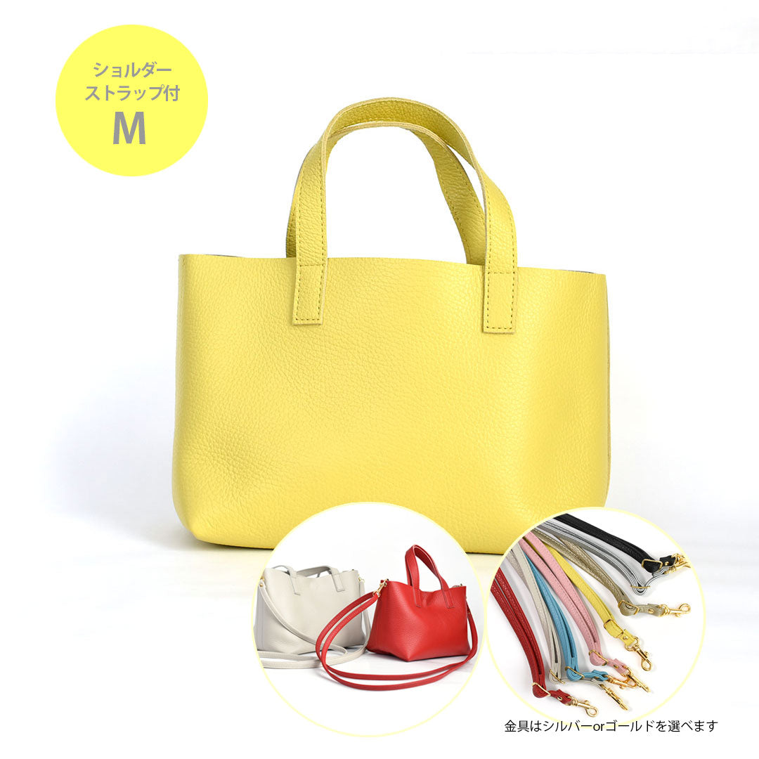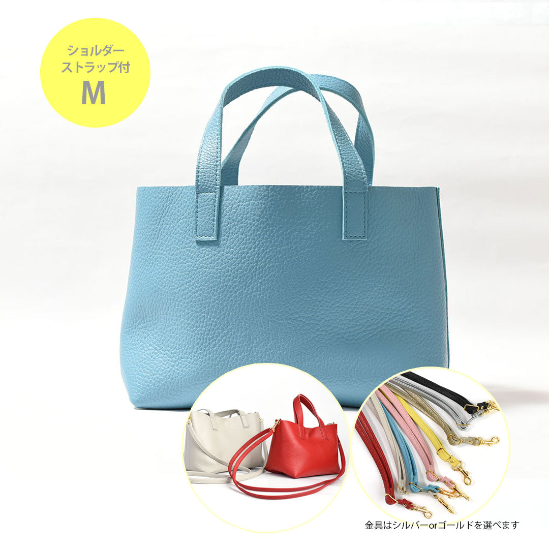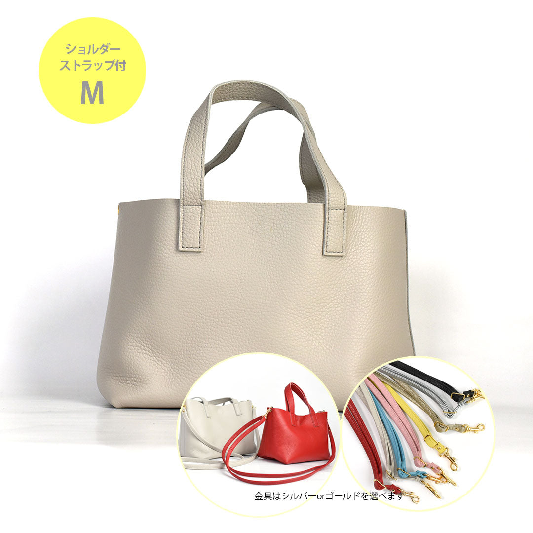 小さい、軽い、収納力抜群、ショルダーストラップ付本革トートバッグ。