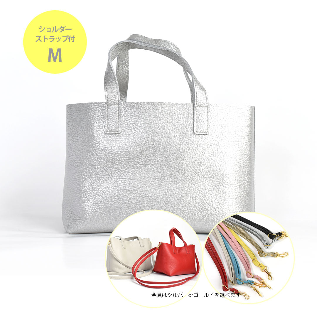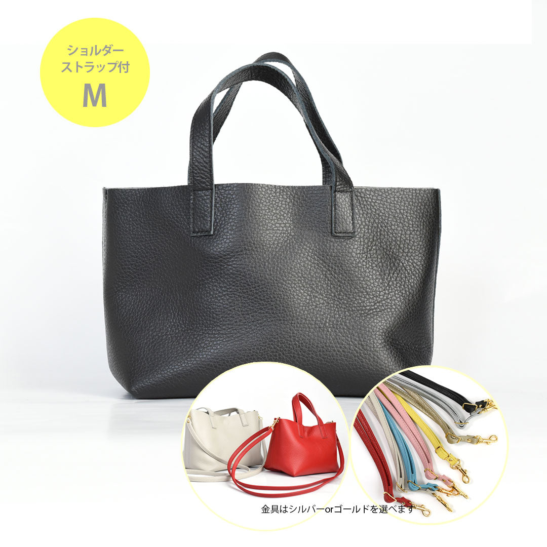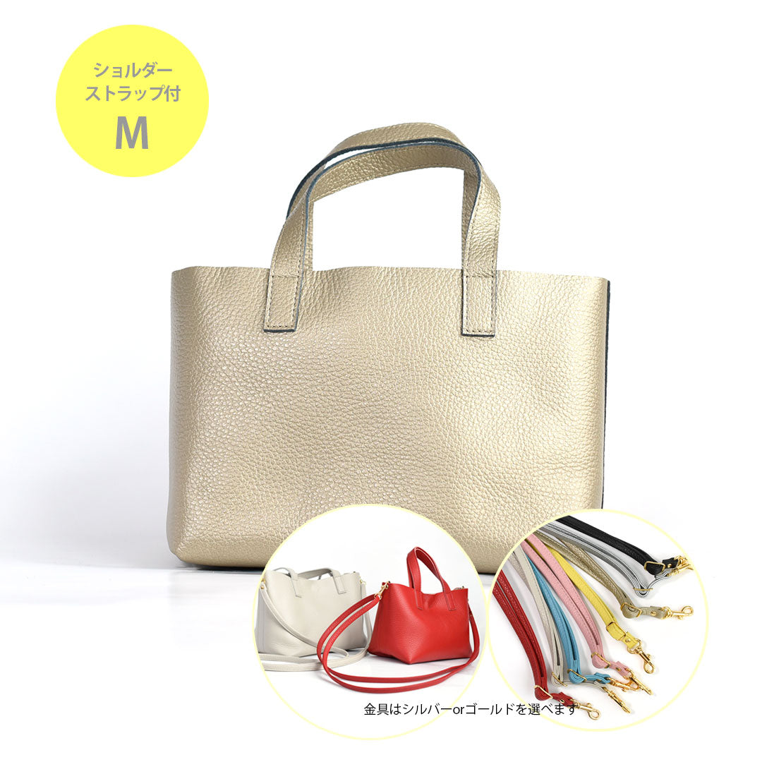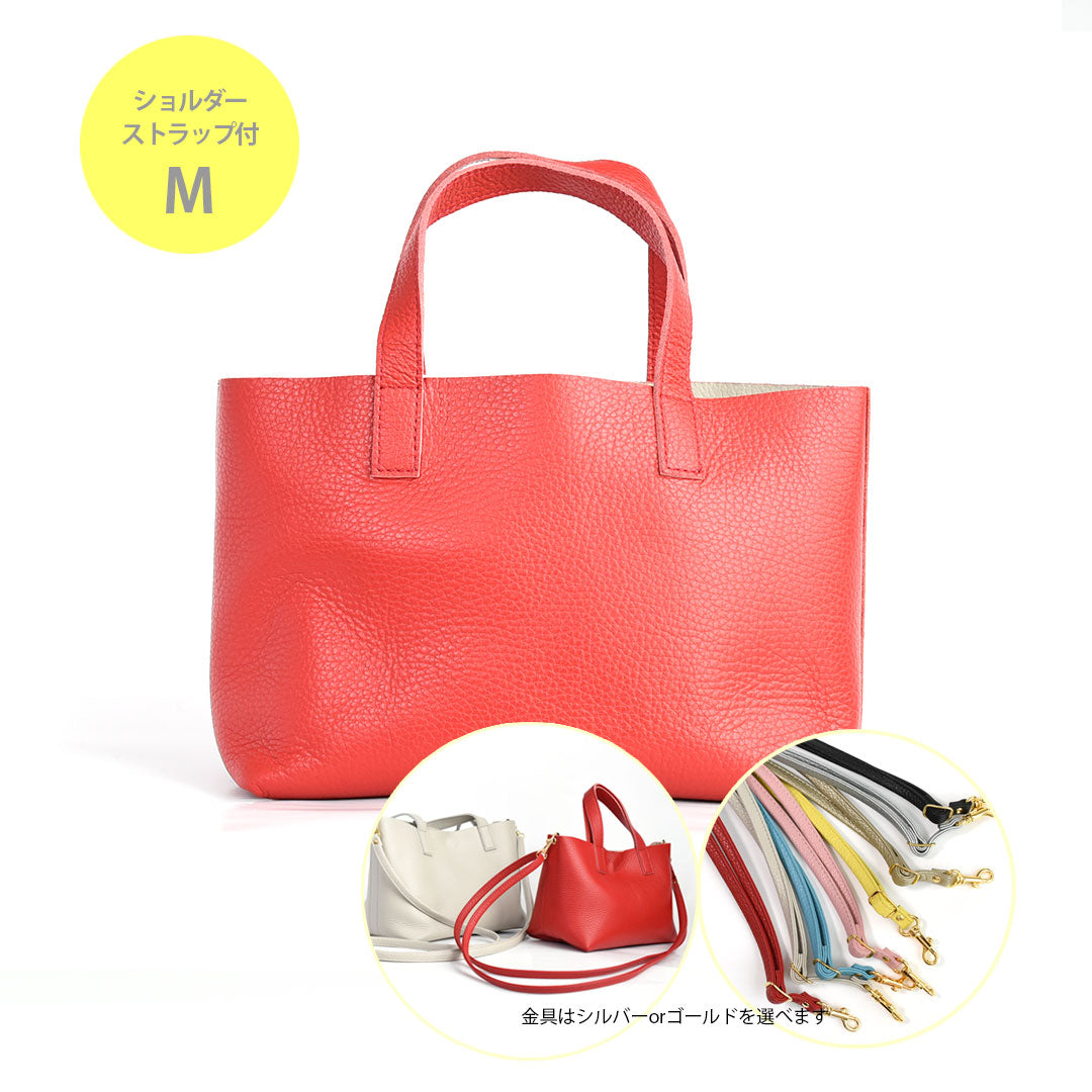 小さい、軽い、収納力抜群、ショルダーストラップ付本革トートバッグ。