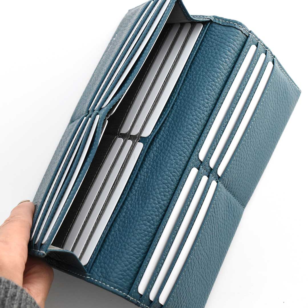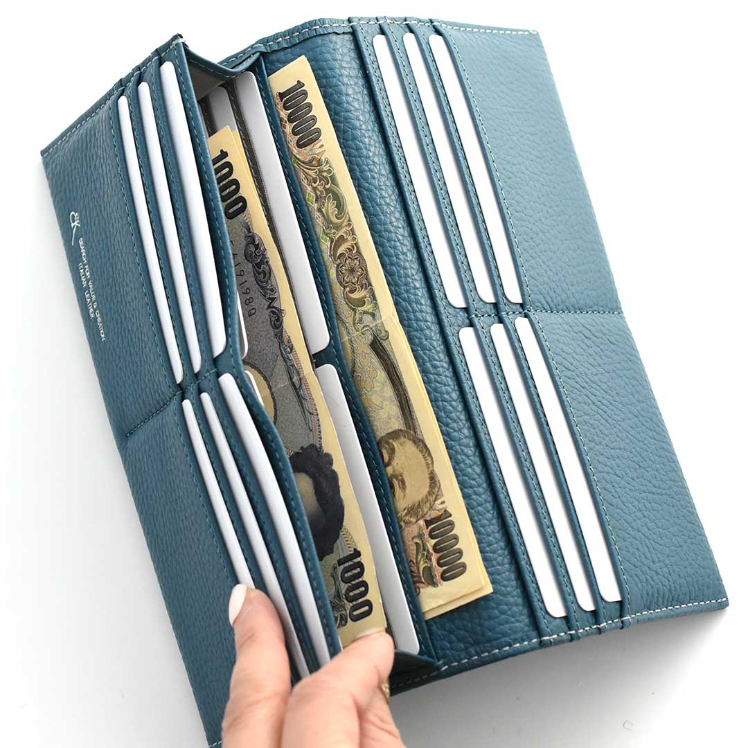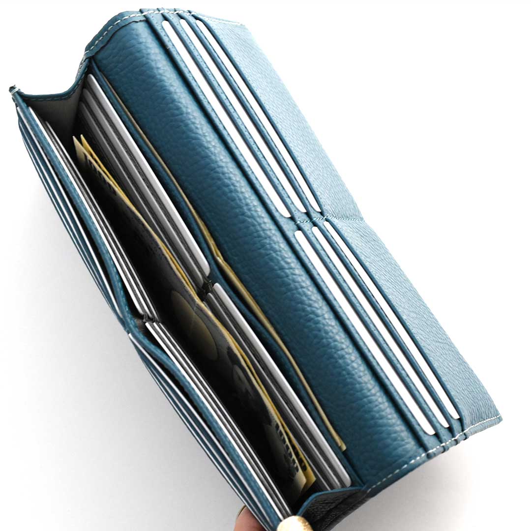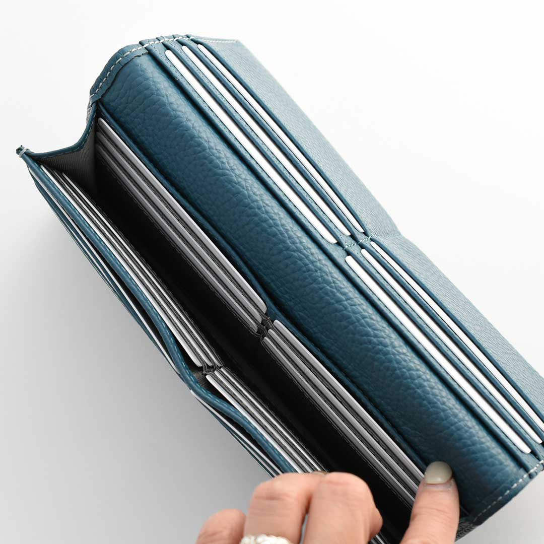 カードを沢山入れるのにも、カードはあまり入れずにスリムに持つのにも、どちらでも使えるお財布です。