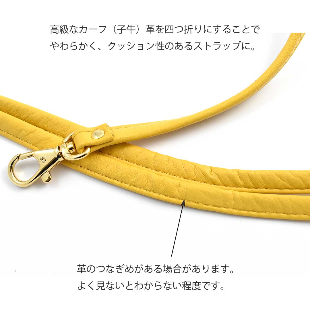 高級な柔らかカーフ革を使ったストラップは、肩にも優しくフィット
