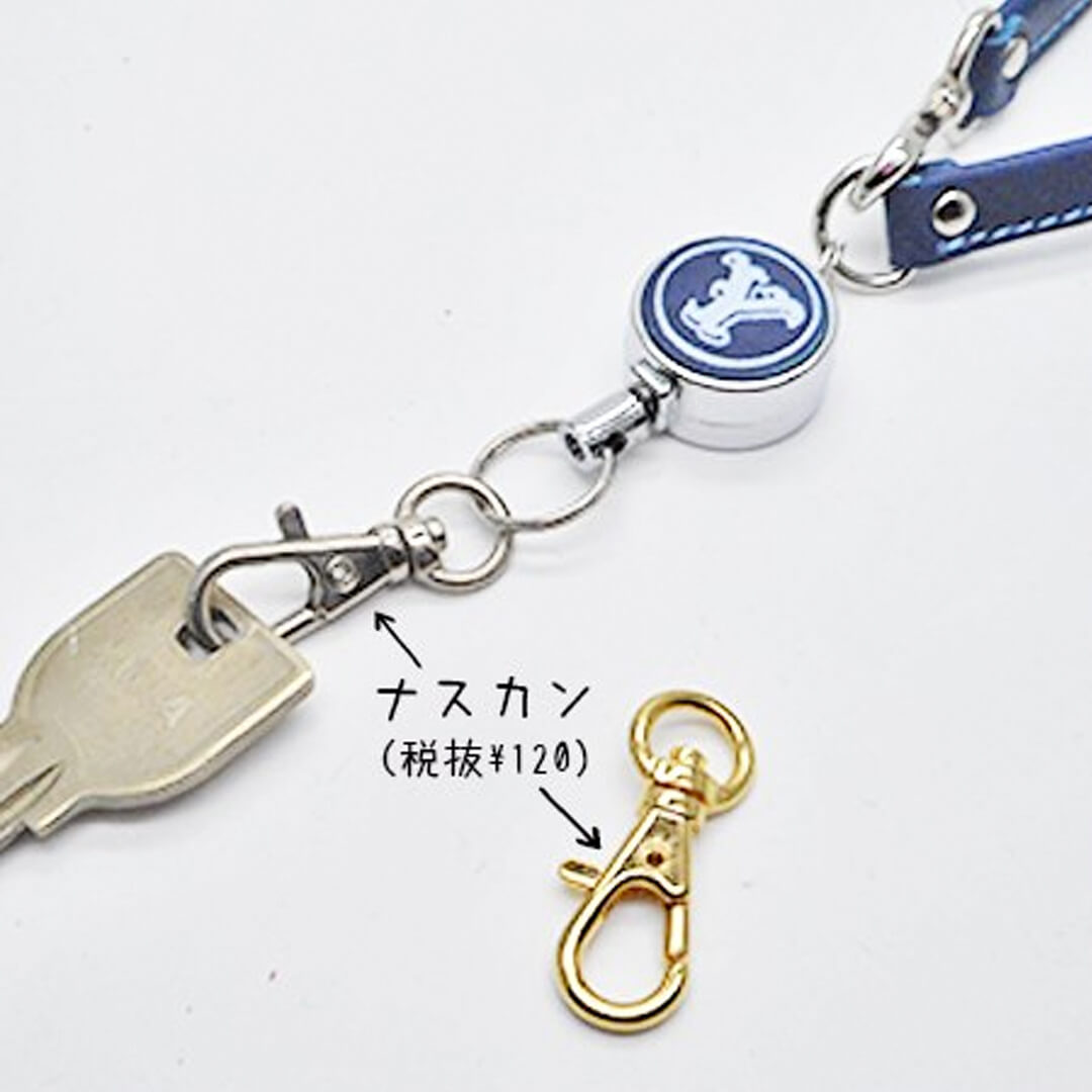 二重リングになっているキーリールの先に「ナスカン」つけると着脱がスムーズに。