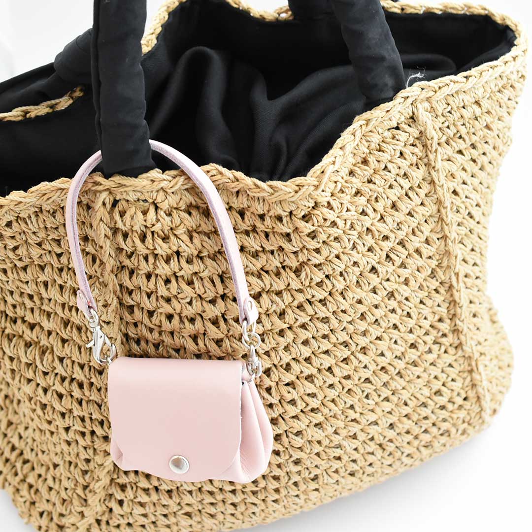 バッグの持ち手にストラップを回してひっかけると、これ自体がアクセサリー感覚。
