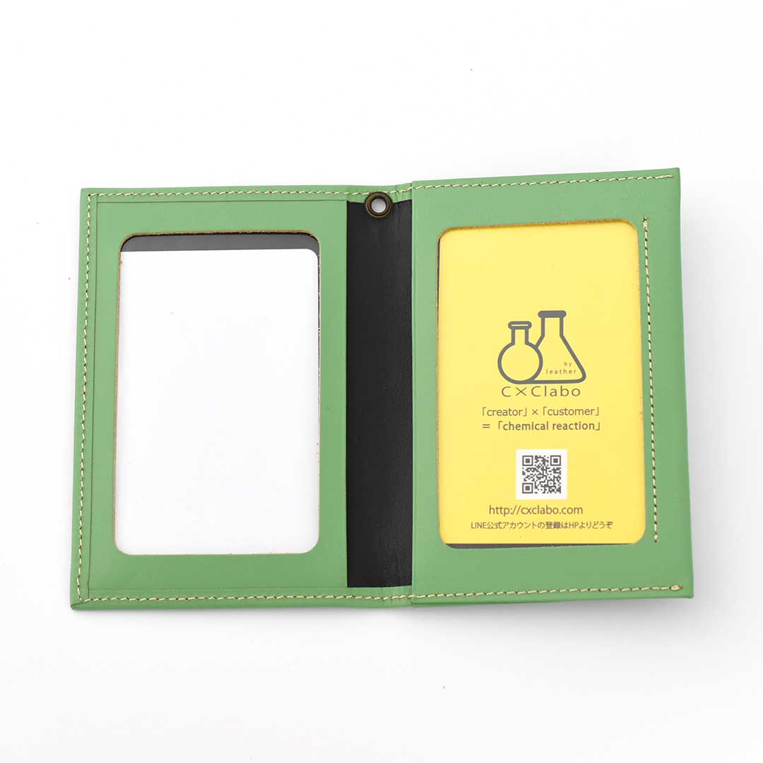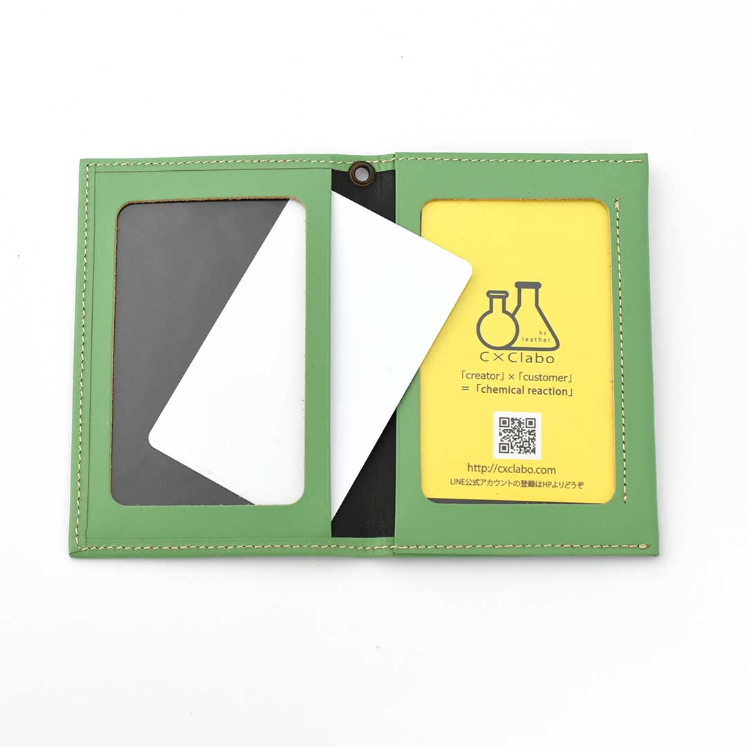 サイズはICカードより大きい、紙の証明書や名刺なども入るサイズです。