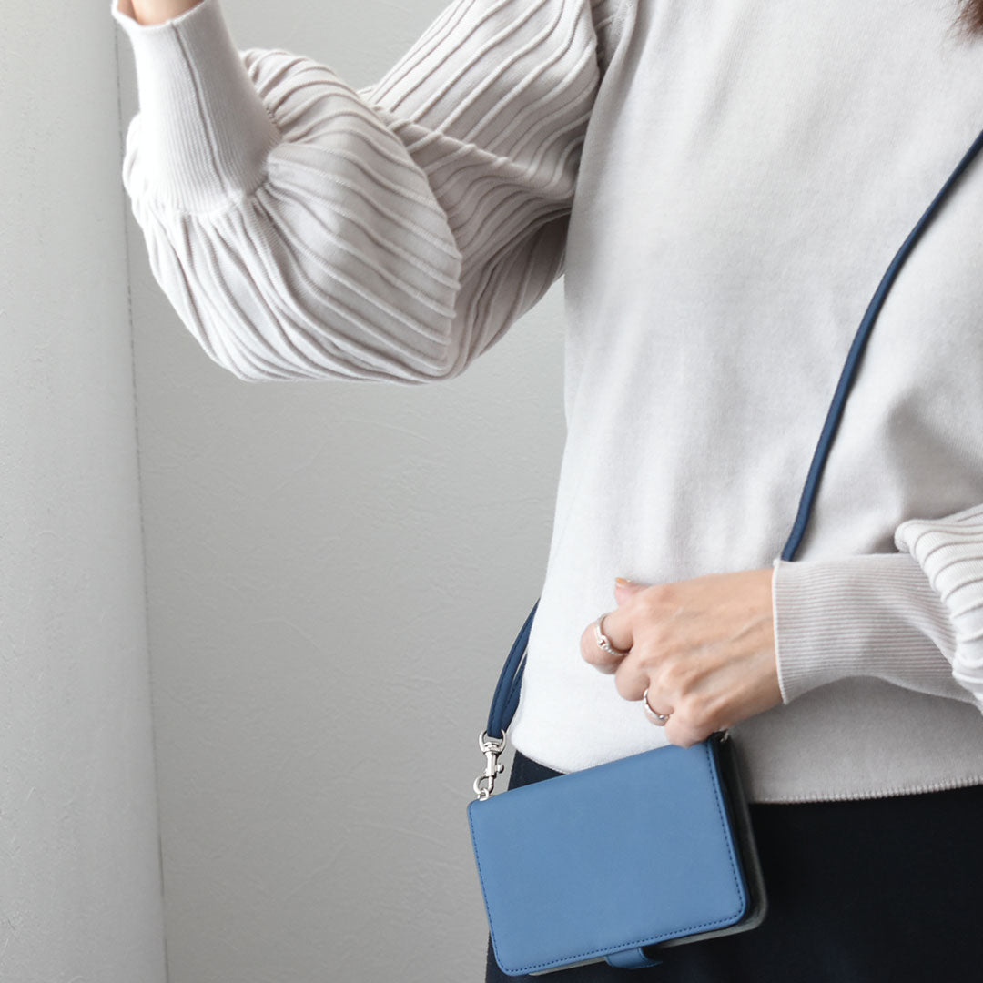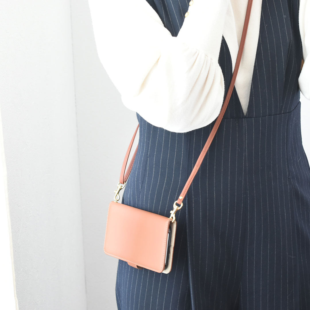 スマホケースなどを斜め掛けするのにぴったり、男性にも人気の革です。