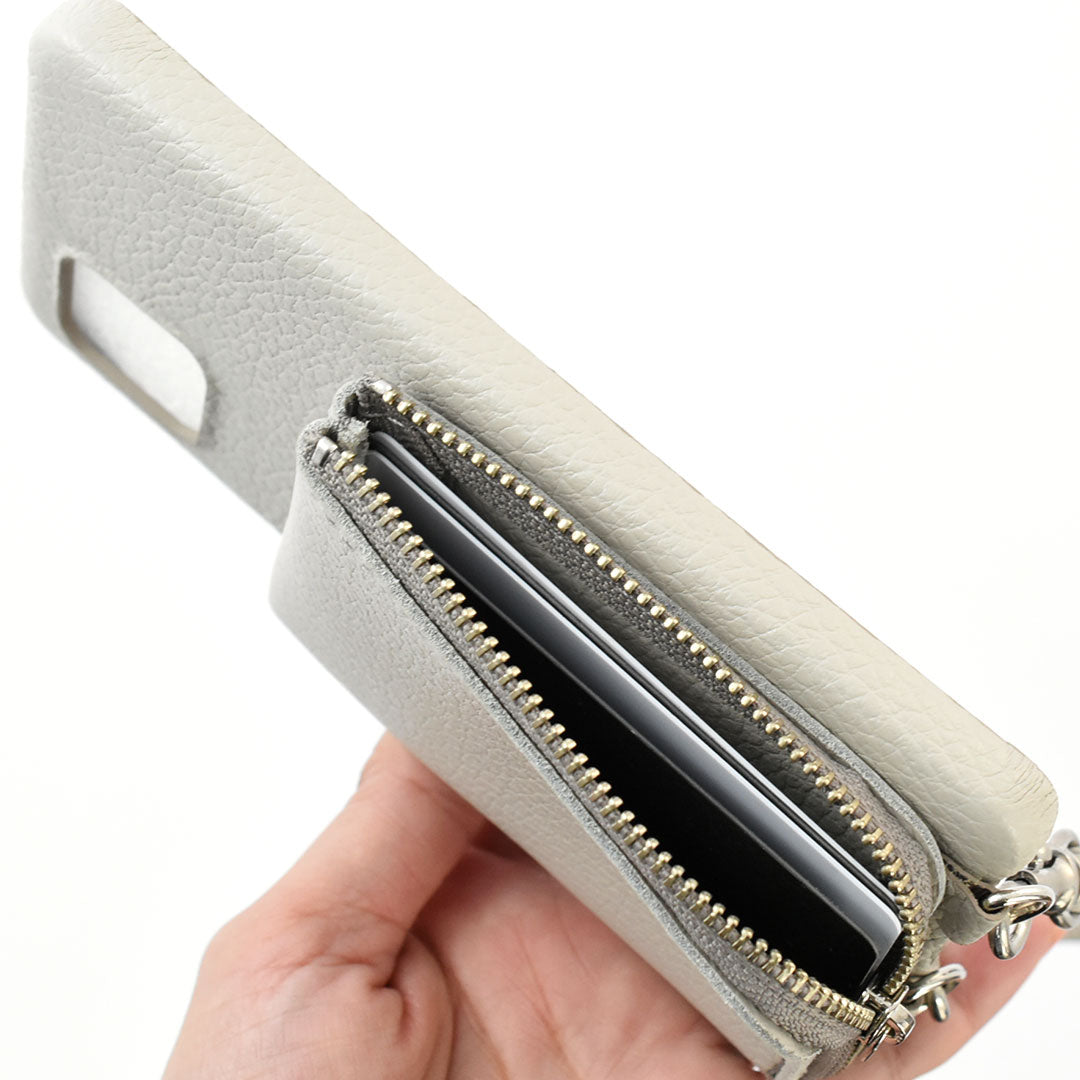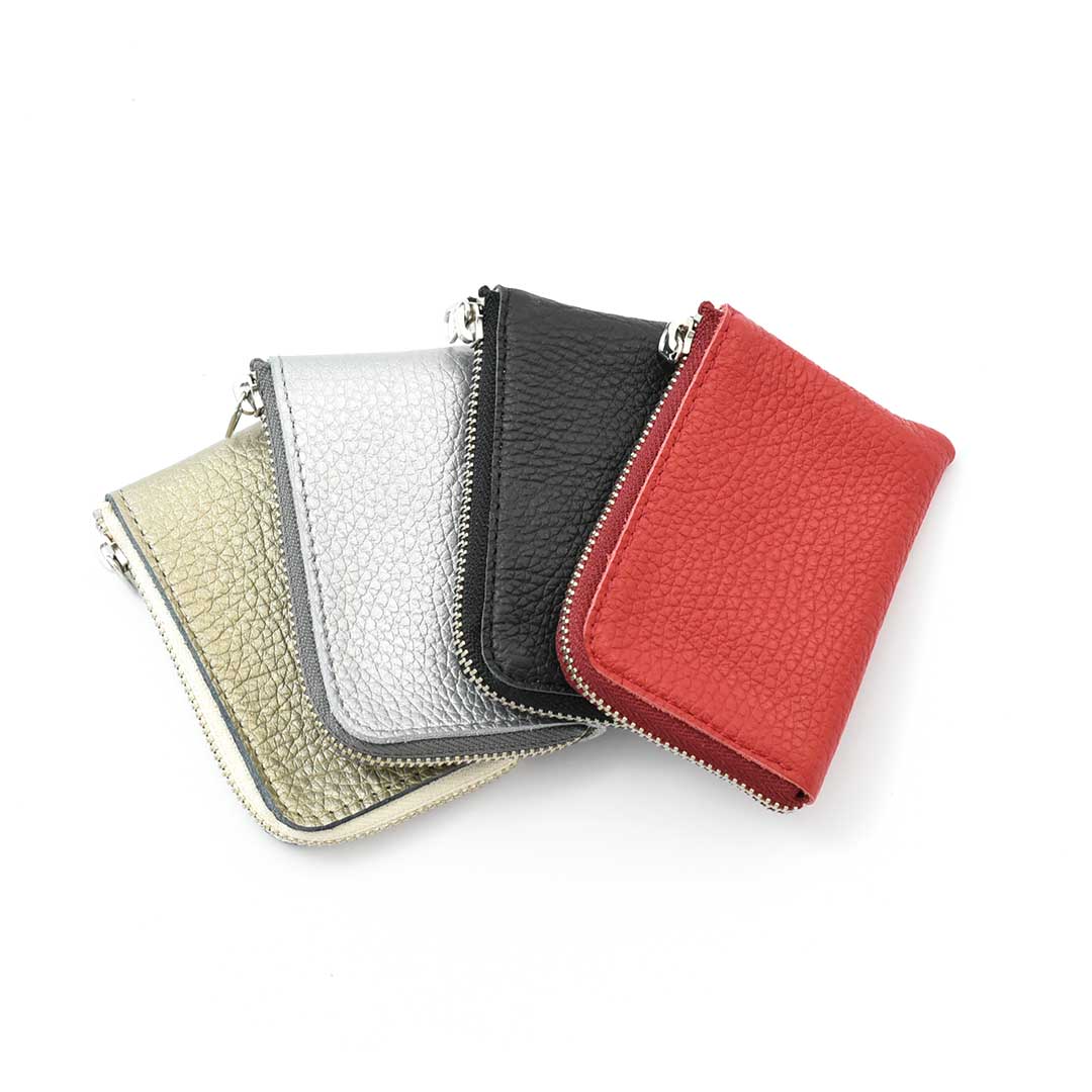 ファスナー小物入れには、小銭や鍵、キャッシュカード3枚程度入れられます。