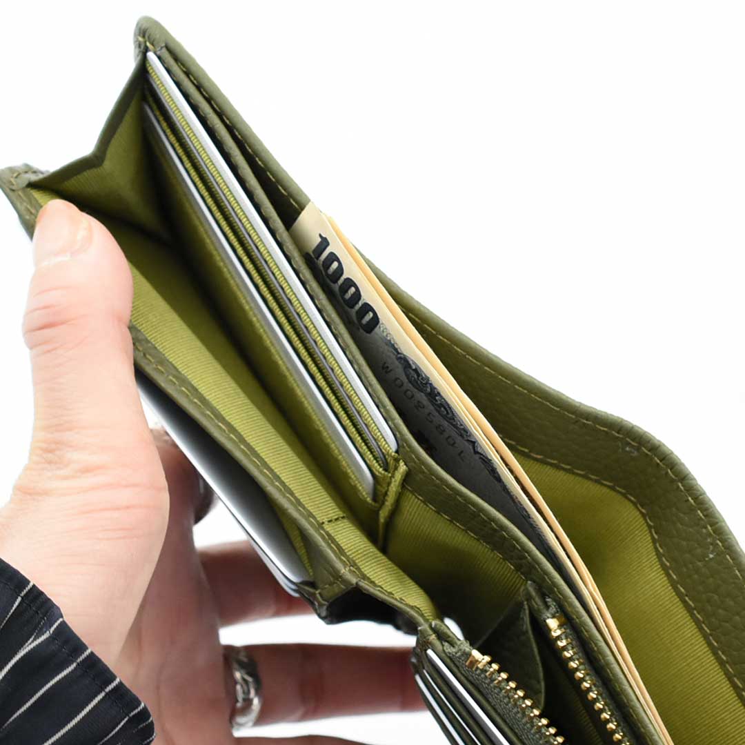 小銭入れには約4.5㎝のマチがついているので、小銭も見やすいつくりになっています。