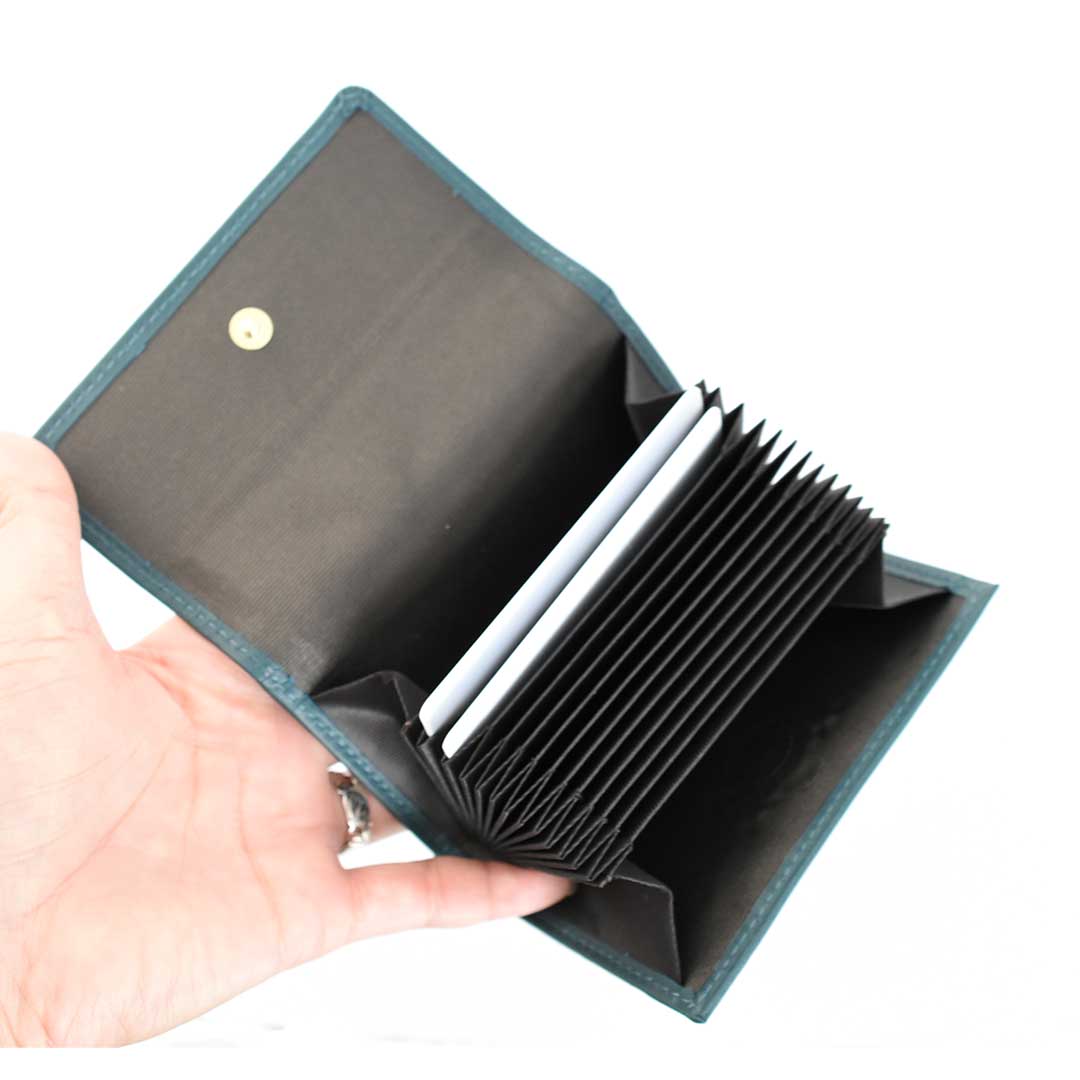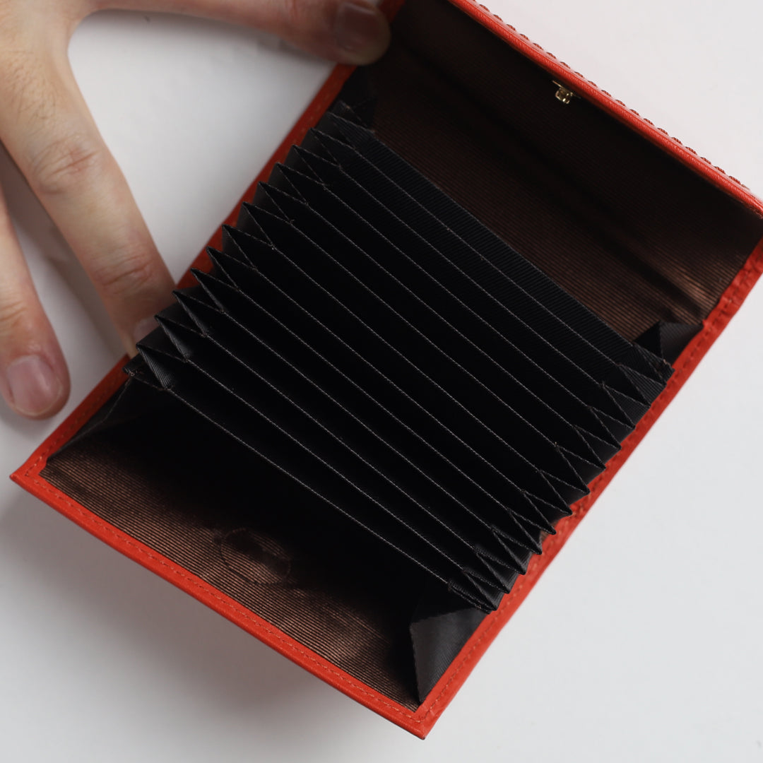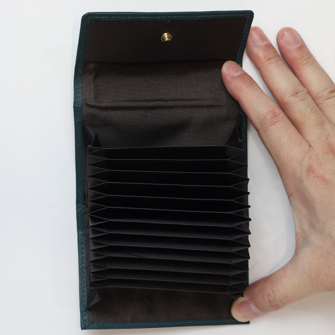 全てのポケットにカードを入れてもパンクしないよう、ホックの受けは2つついています。