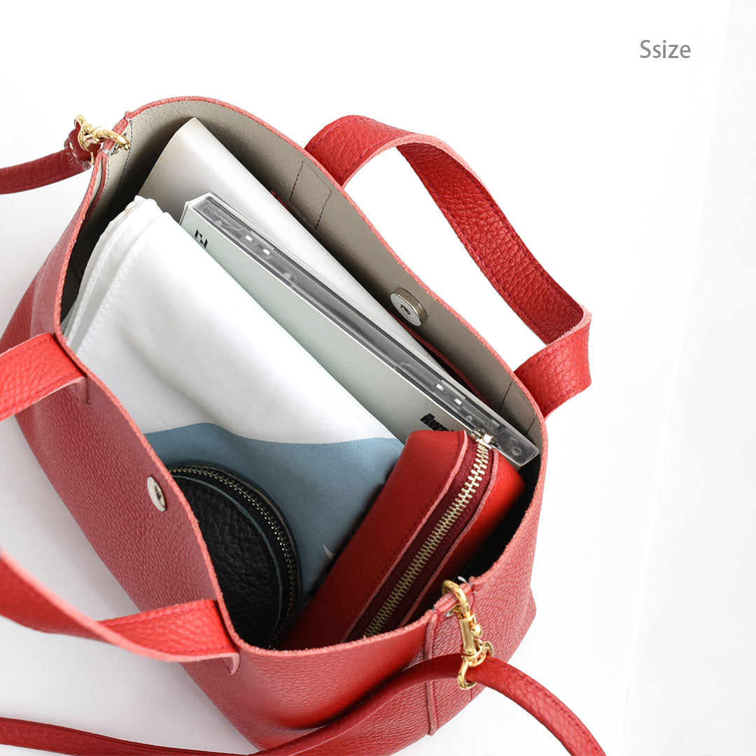 ショルダーストラップ付きで2WAY、軽くてコンパクトな本革トートバッグ