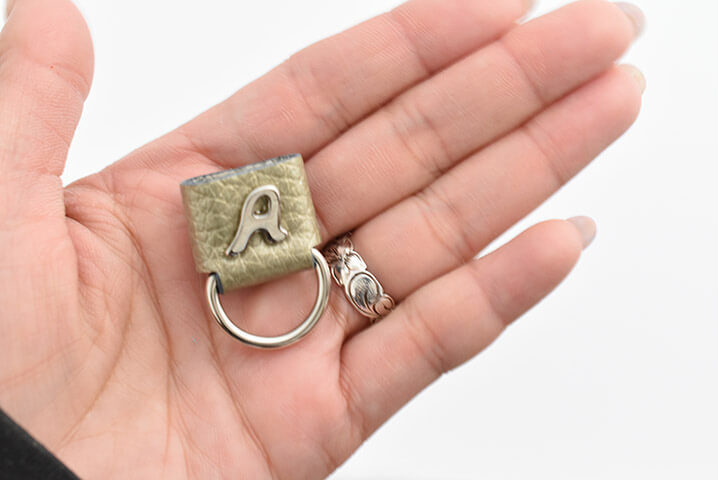 イニシャルがワンポイントになっていてアクセサリー感覚でつけられます。
