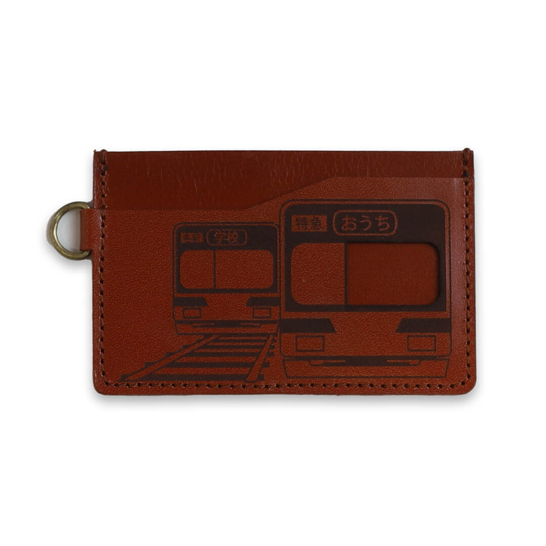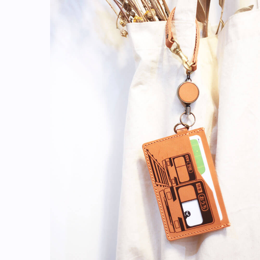 電車パスケースと同じ革を使用している栃木レザーのリールつきストラップを