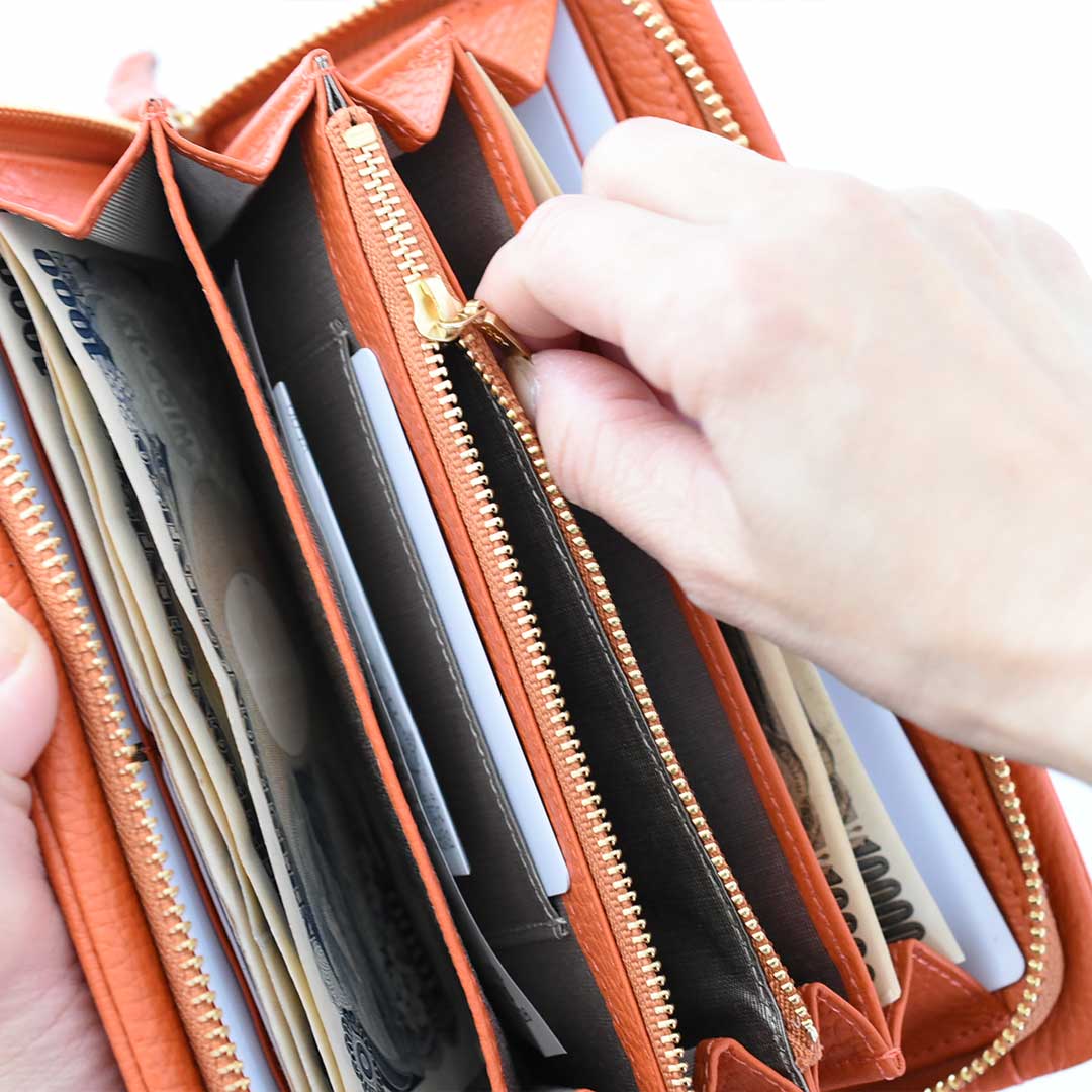 ・小銭入れにも 小銭が見やすいように片側にマチがついています。