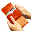 お札の端はカード入れ上部分の革の下にくぐらせて収納します