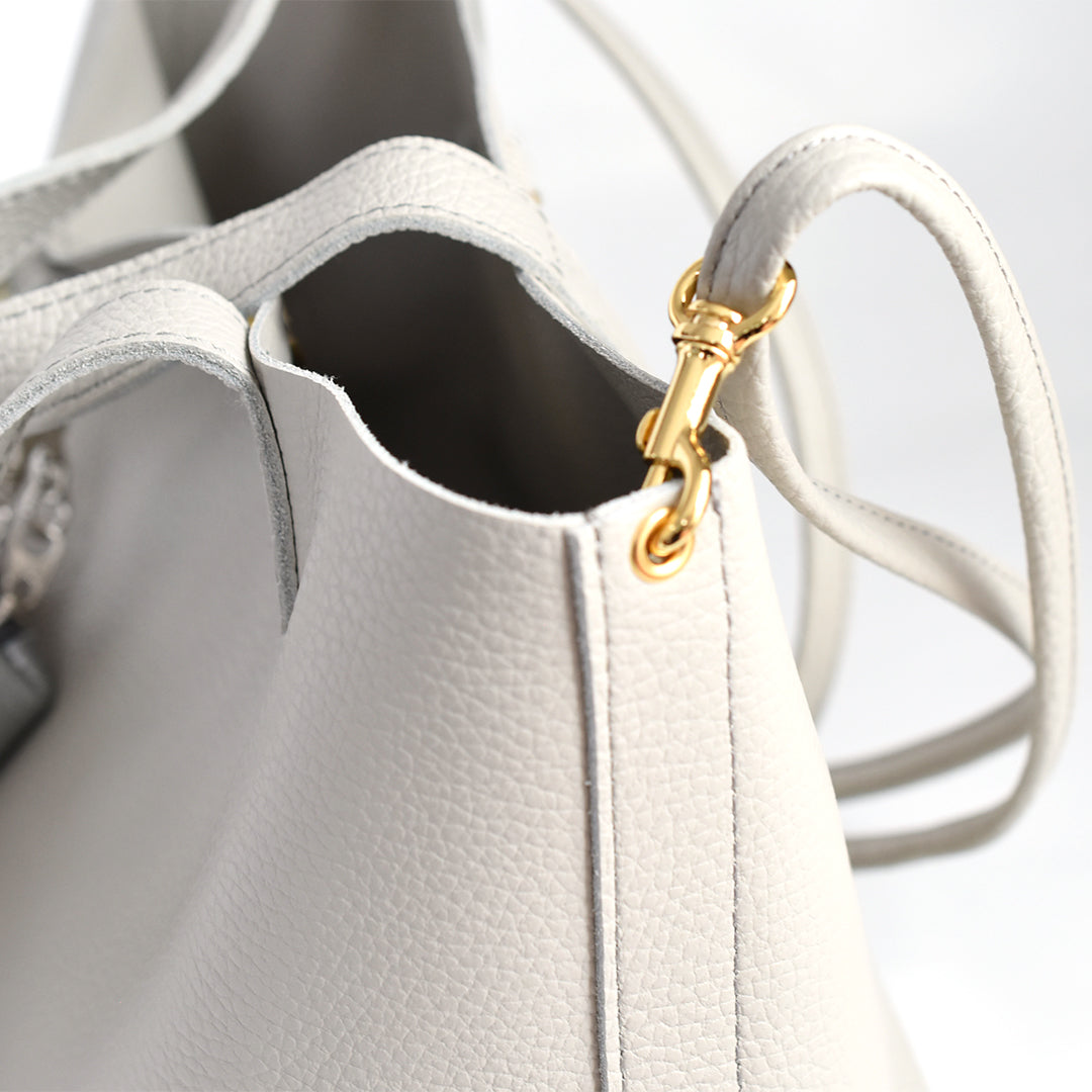 長さの調整ができ、取り外しもできるショルダーストラップなので、手持ち、肩掛け、ななめ掛けなどスタイルにあわせて。