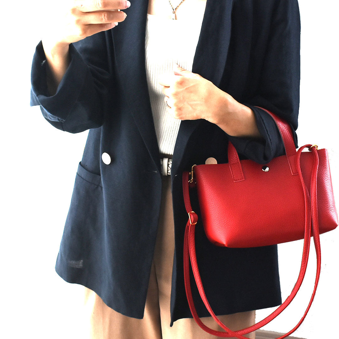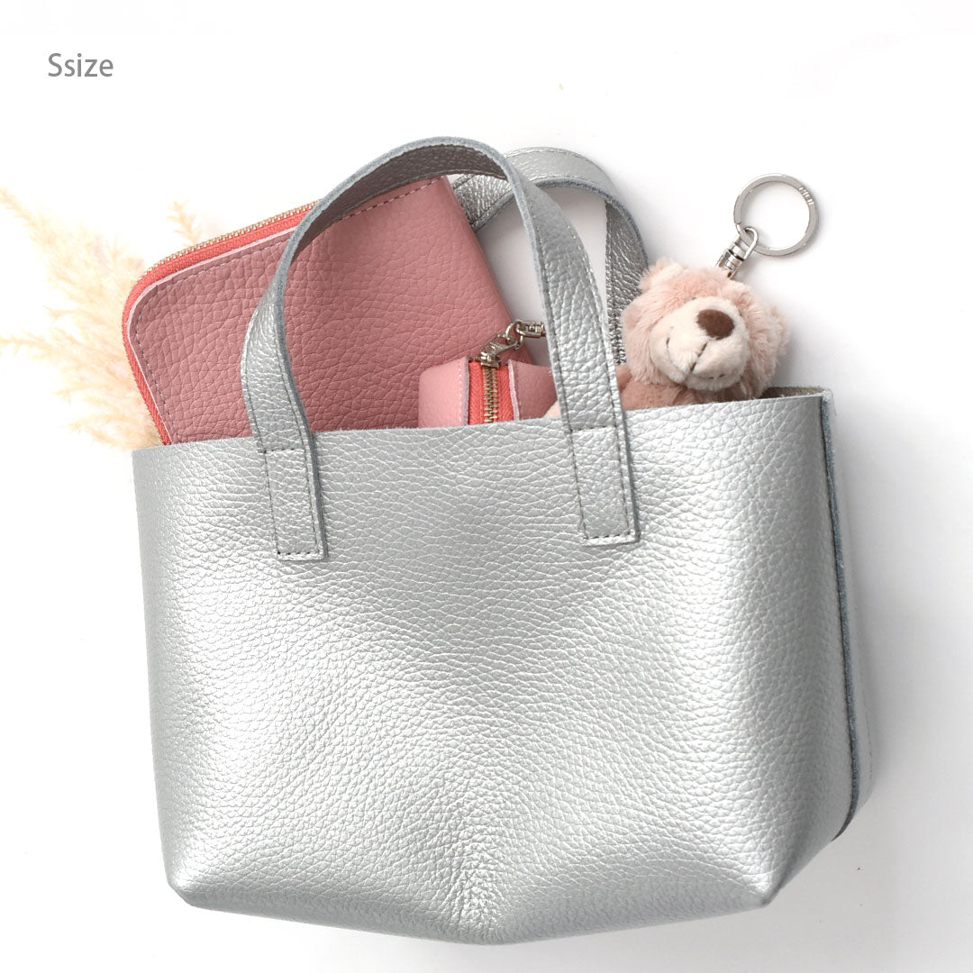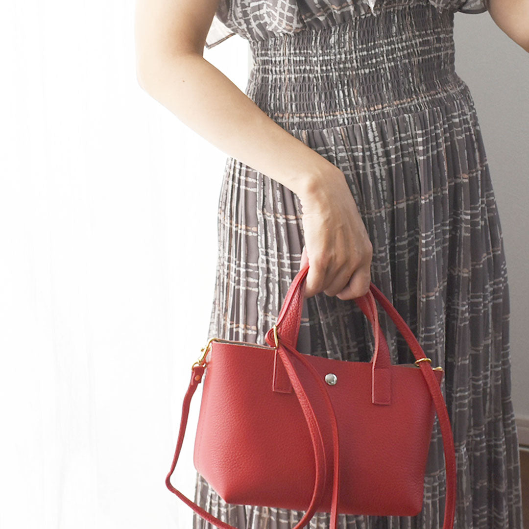 シンプルデザインで軽さが際立つ、本革ミニトートバッグ