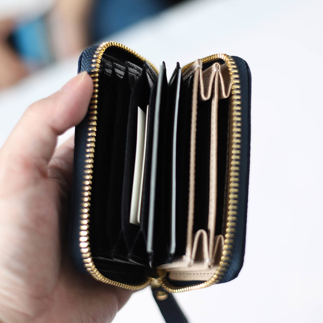 すっと取り出せるのが嬉しい、ジャバラカードポケット式。